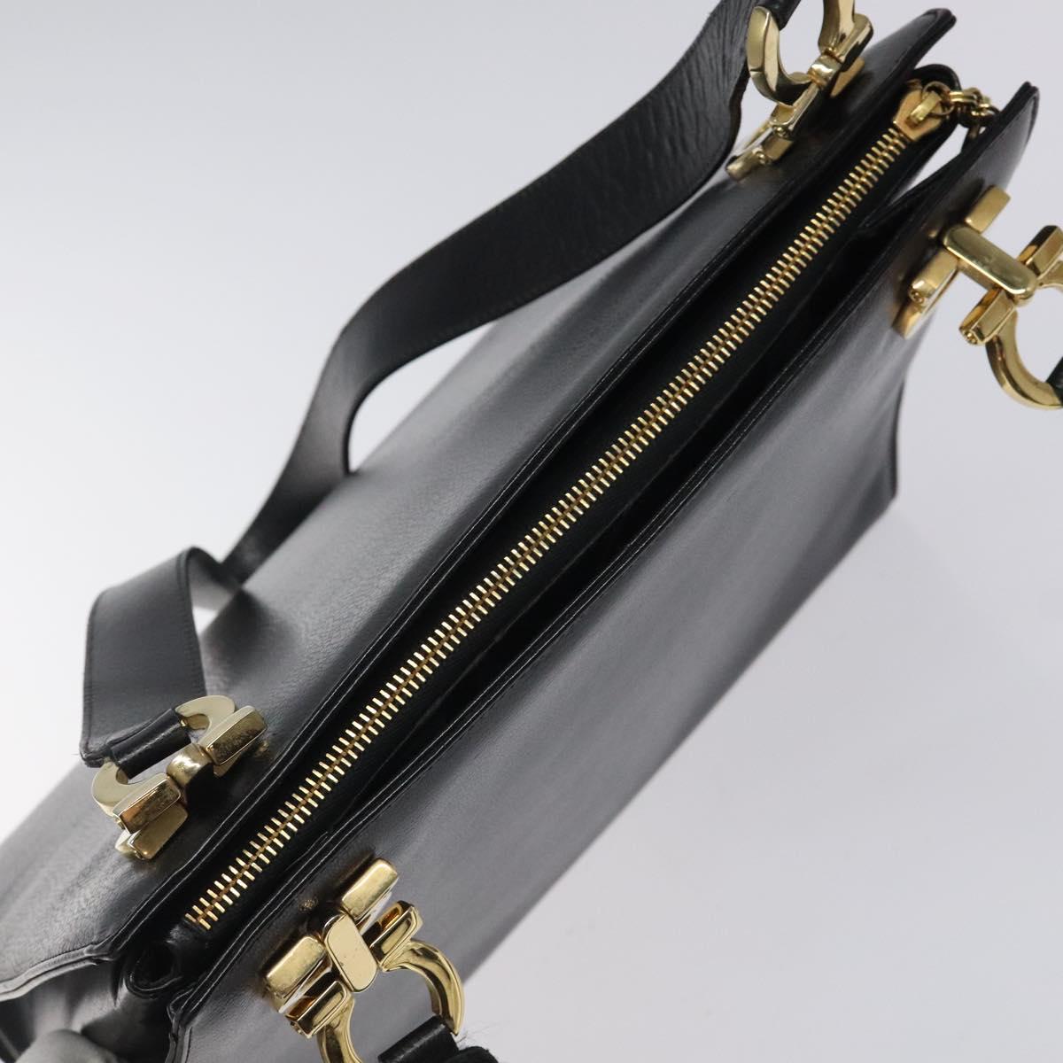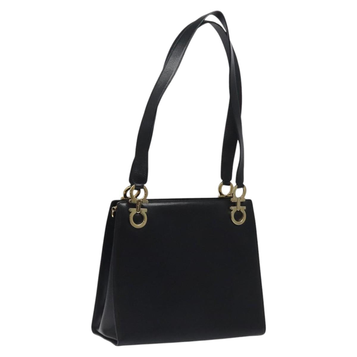 Salvatore Ferragamo Gancini Shoulder Bag Leather Black Gold Auth 117541