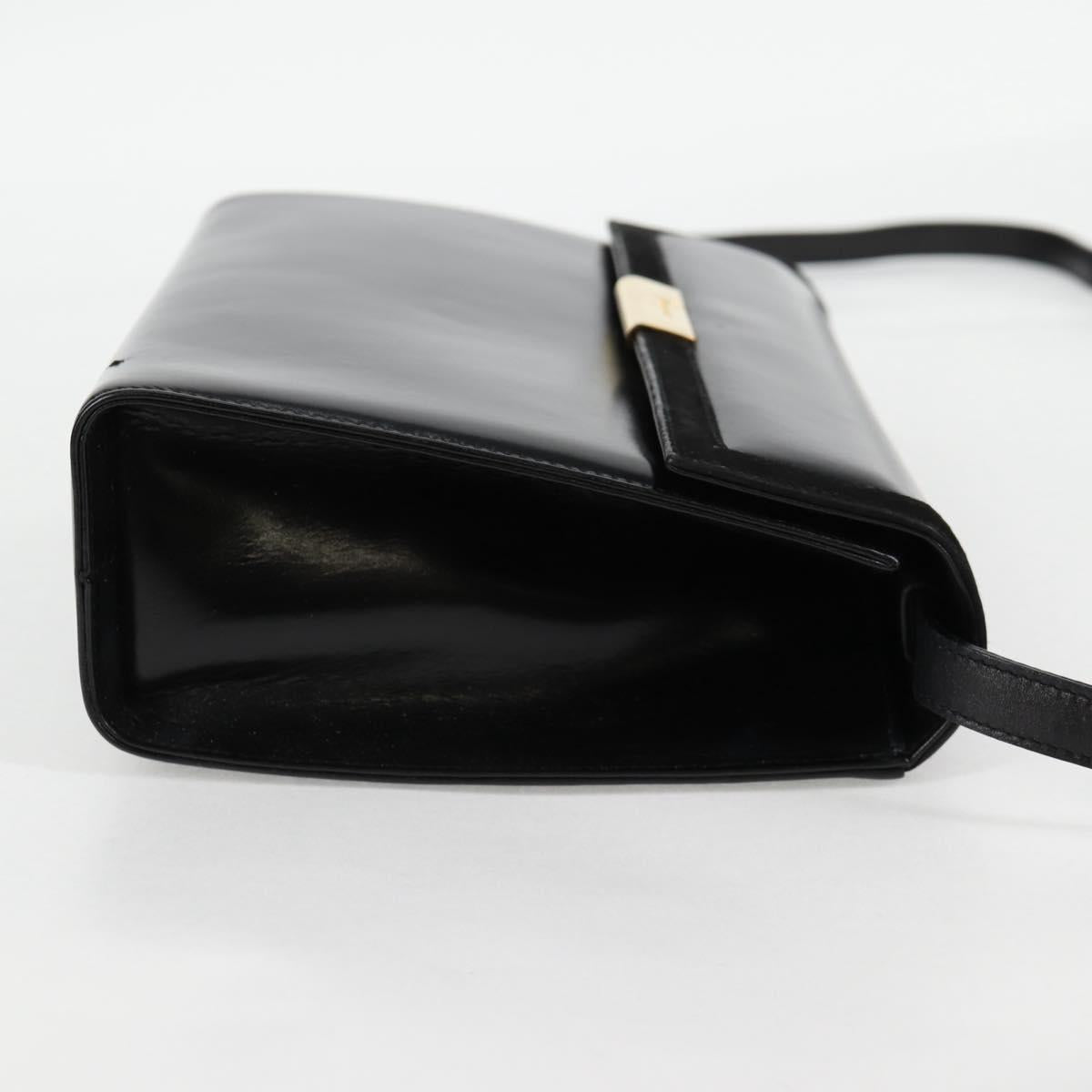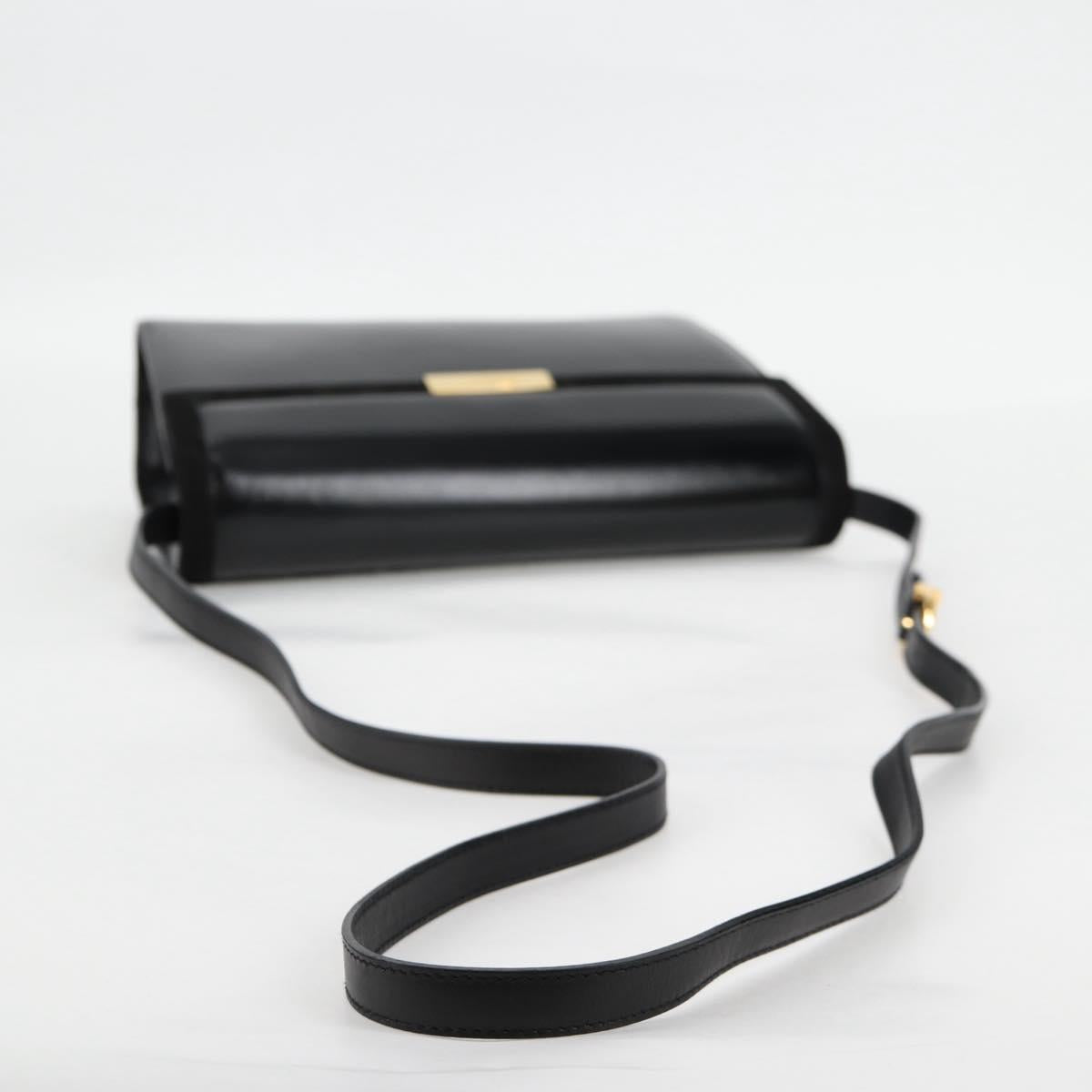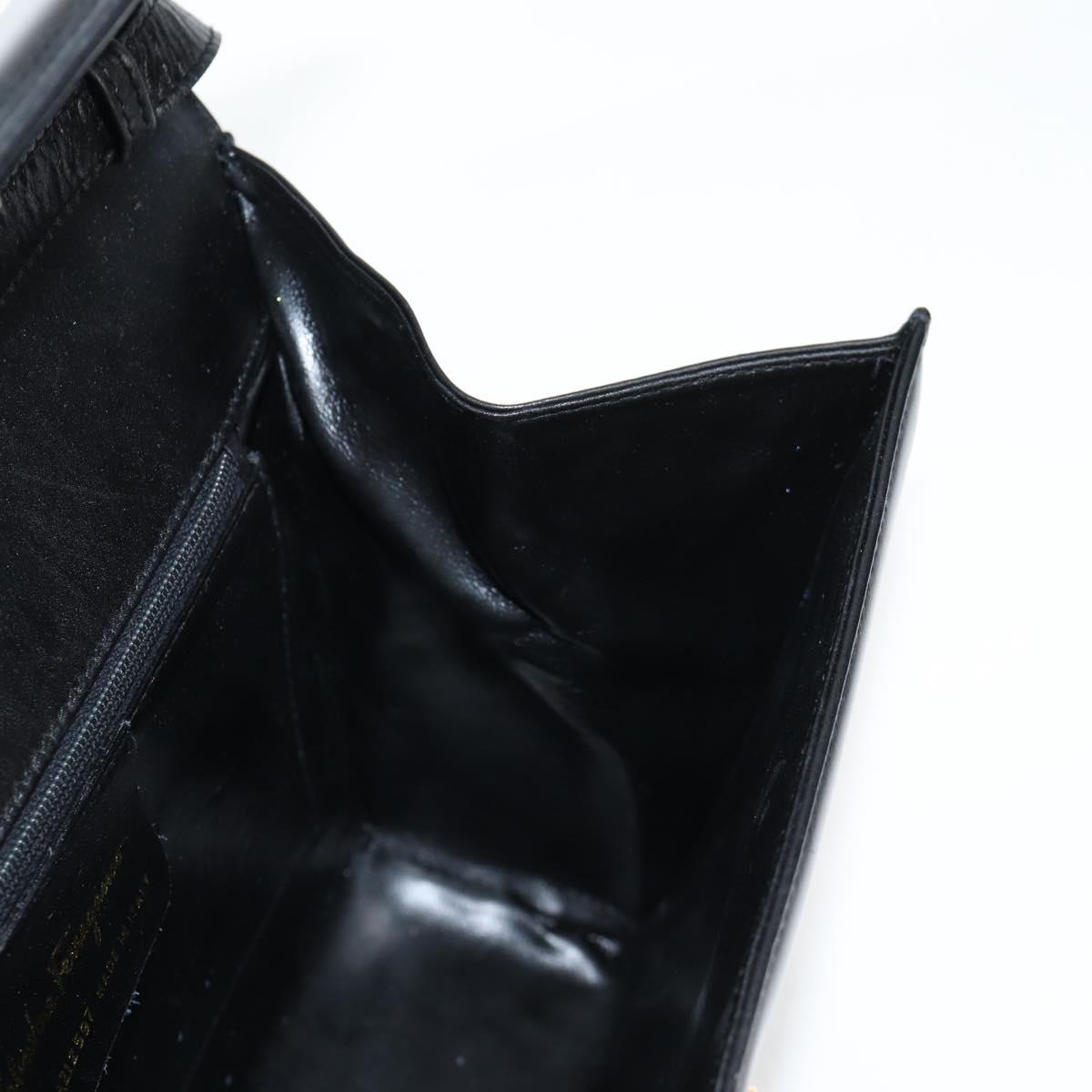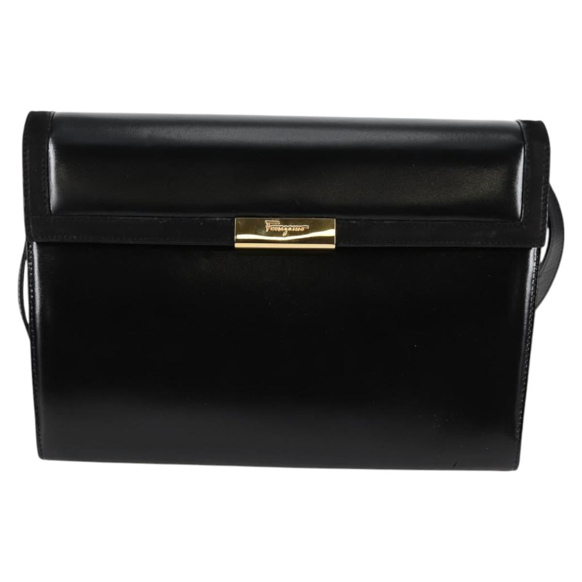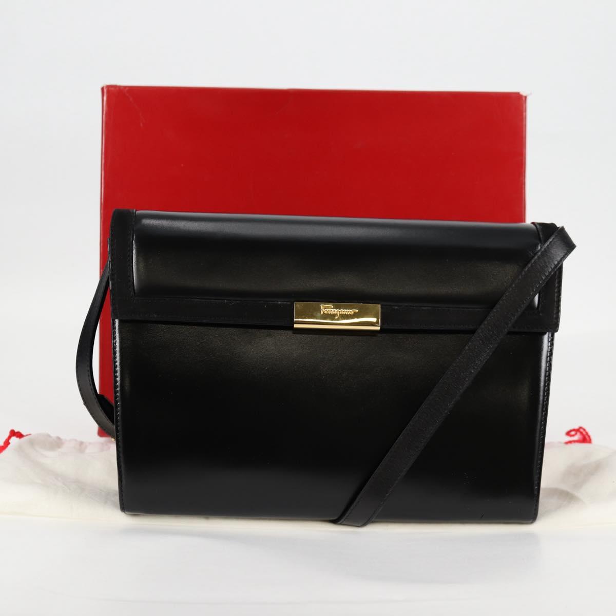 Salvatore Ferragamo Gancini Shoulder Bag Leather Black Gold Auth 118793V