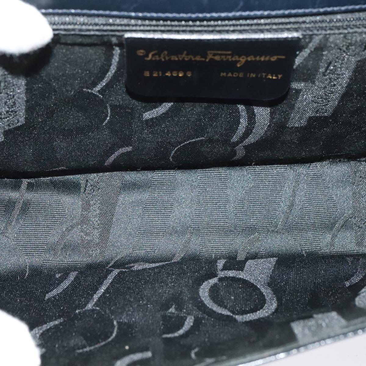Salvatore Ferragamo Gancini Shoulder Bag Leather Black Gold Auth 135489