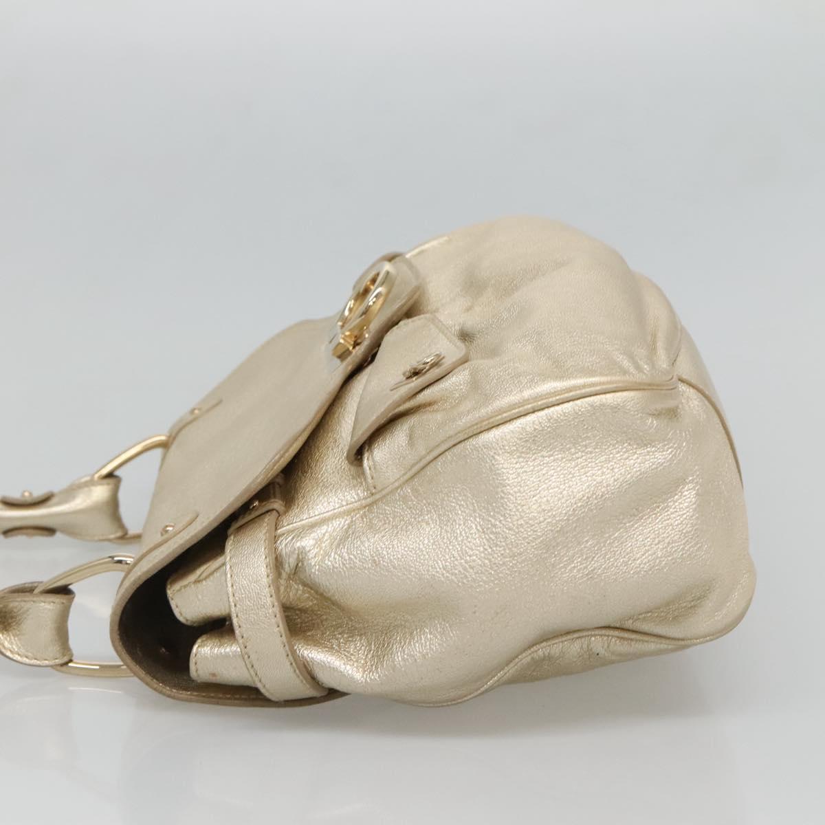 Salvatore Ferragamo Gancini Bag Leather Champagne Gold Gold Auth BA3466V