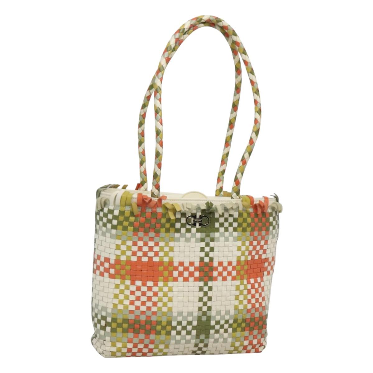 Salvatore Ferragamo Gancini Shoulder Bag Leather Green Silver Auth 130981
