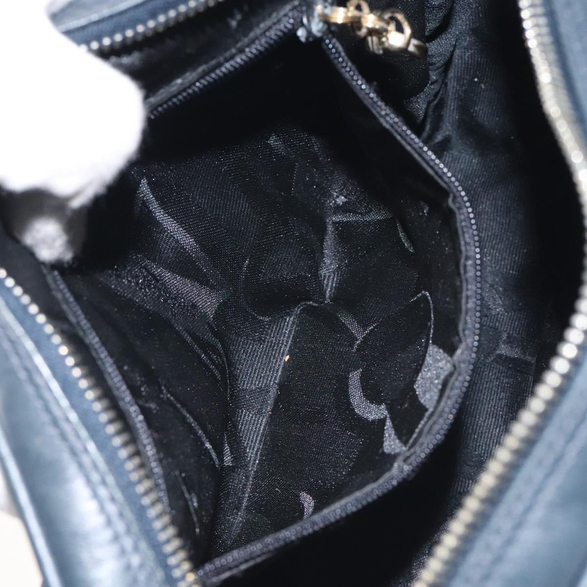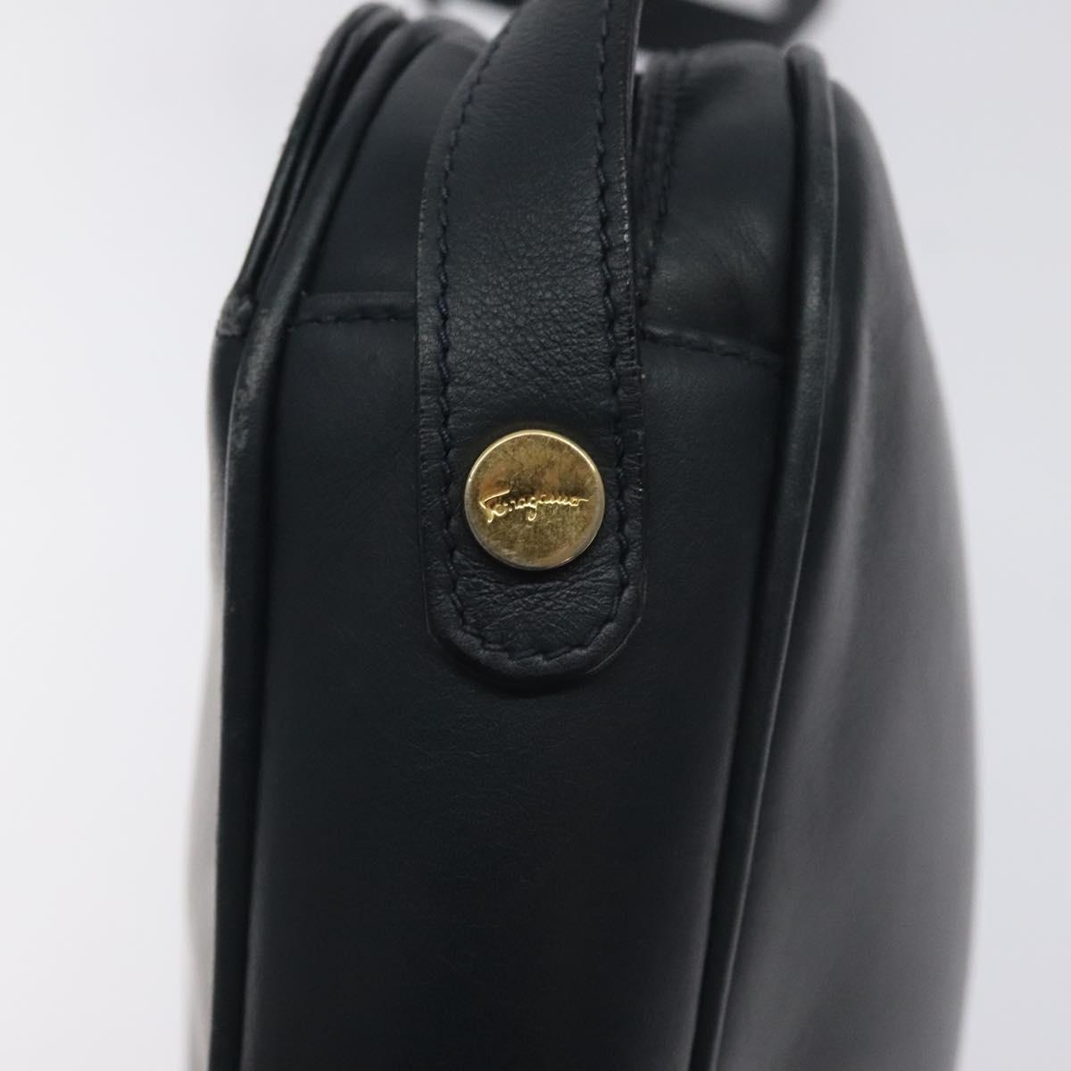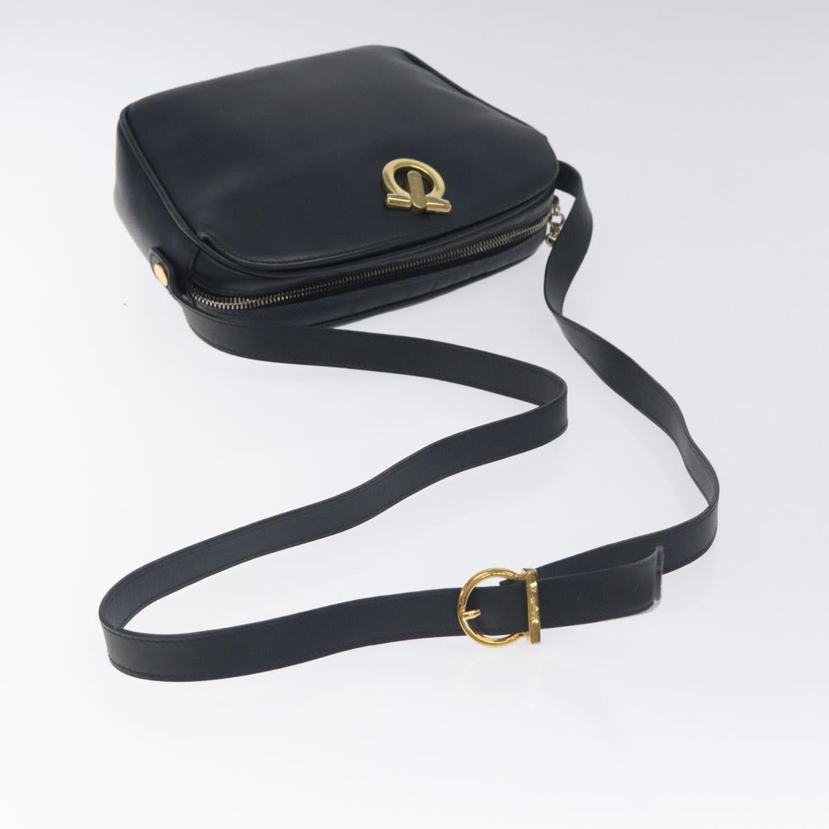 Salvatore Ferragamo Gancini Shoulder Bag Leather Navy Gold Auth 130895