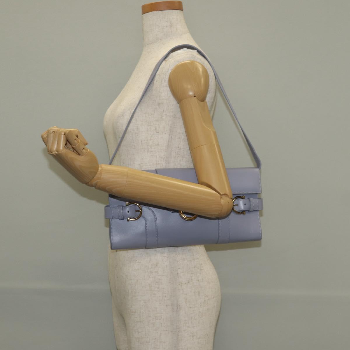 Salvatore Ferragamo Gancini Shoulder Bag Leather Purple Gold Auth 145499V