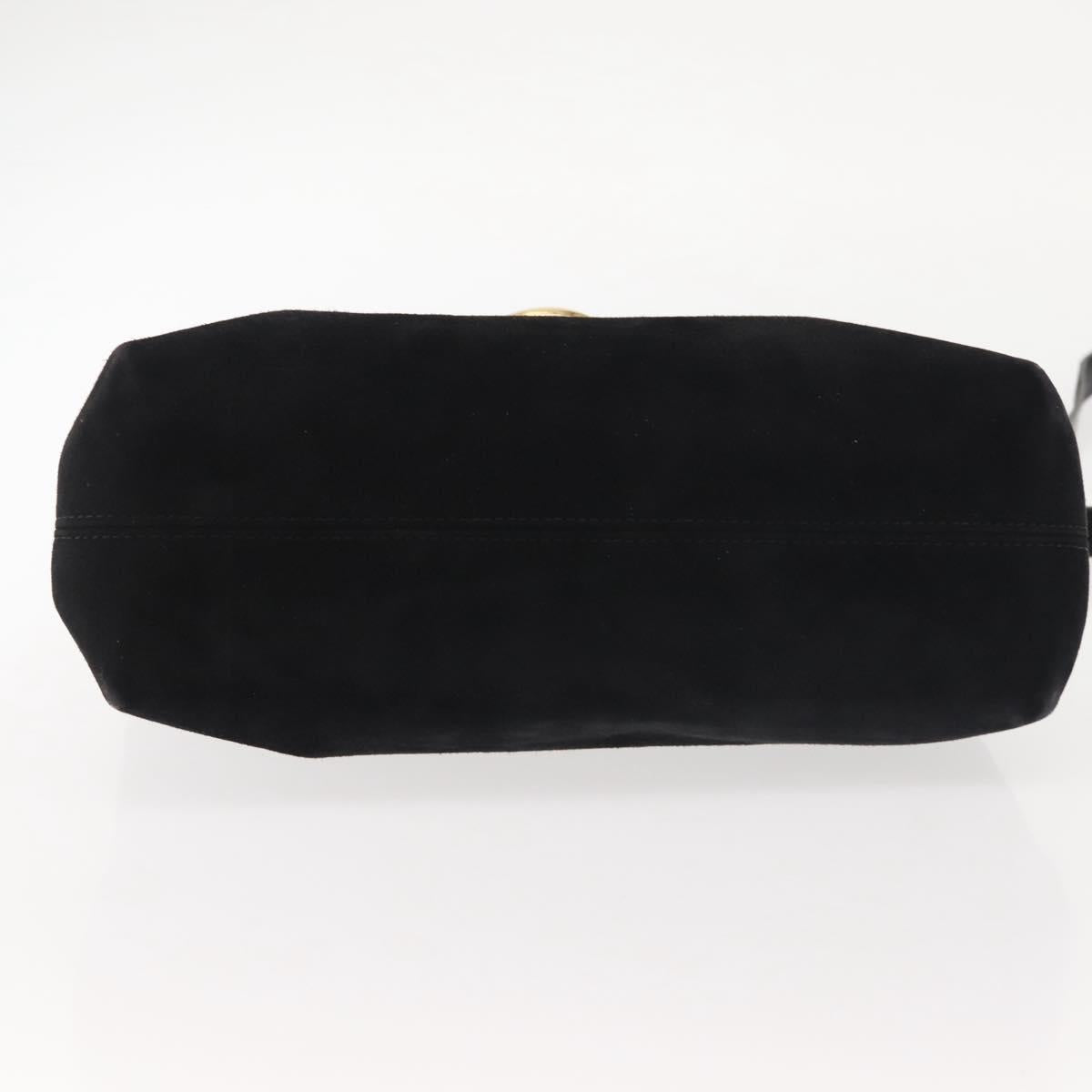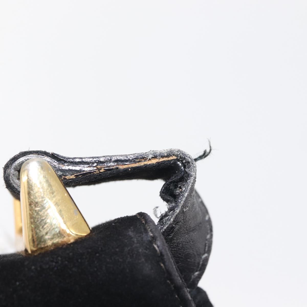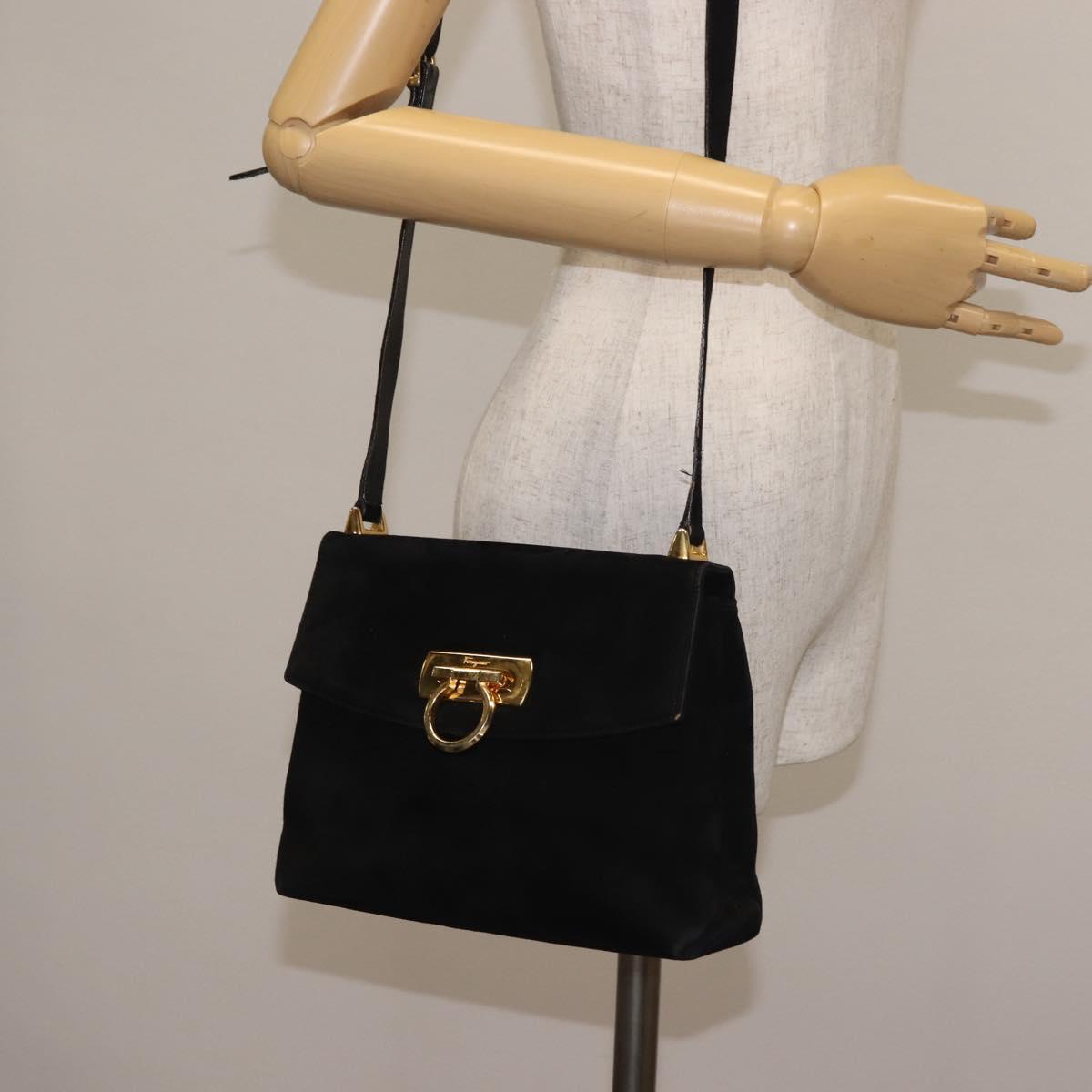 Salvatore Ferragamo Gancini Shoulder Bag Suede Black Gold Auth 142668