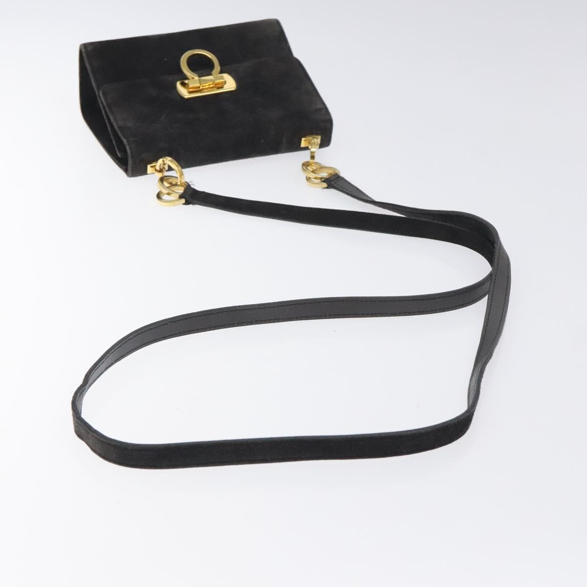 Salvatore Ferragamo Gancini Shoulder Bag Suede Black Gold Auth bs26286