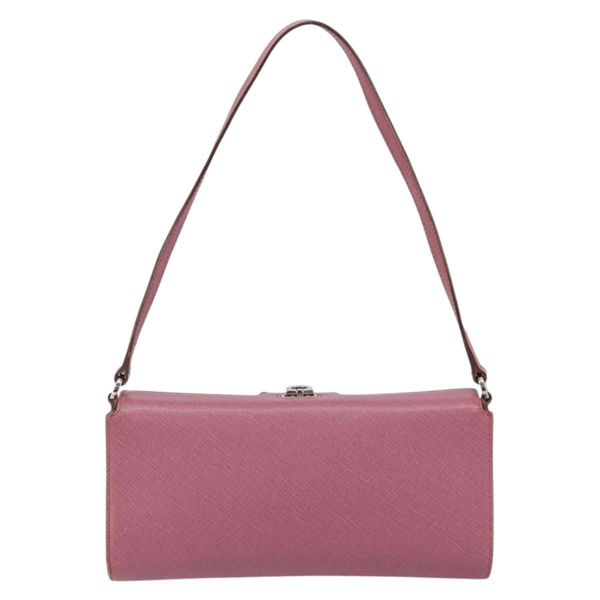 Salvatore Ferragamo Gancini Shoulder Pouch Leather Pink Silver Auth bs29685