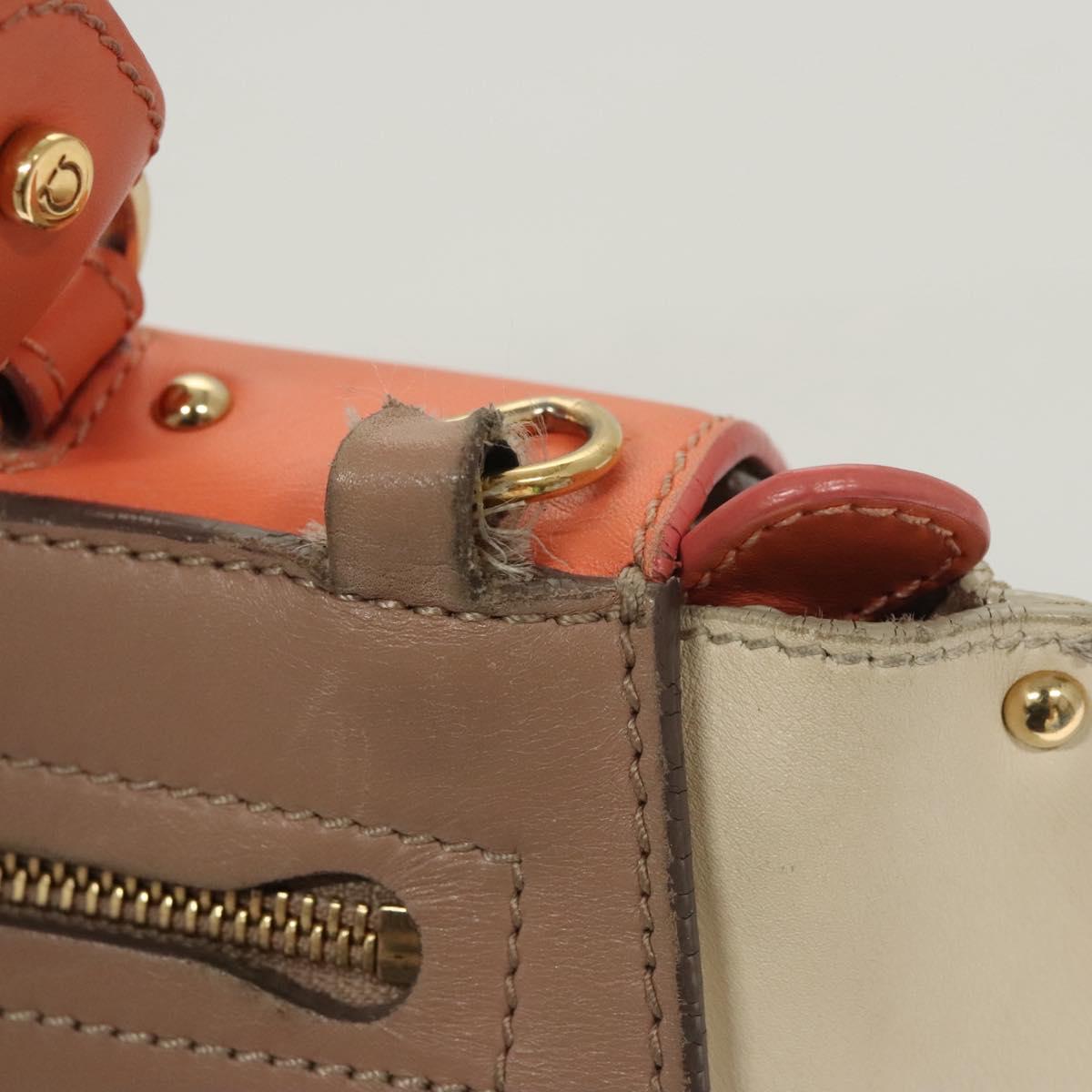 Salvatore Ferragamo Gancini Sofia Hand Bag Leather 2way Beige Gold Auth 124618