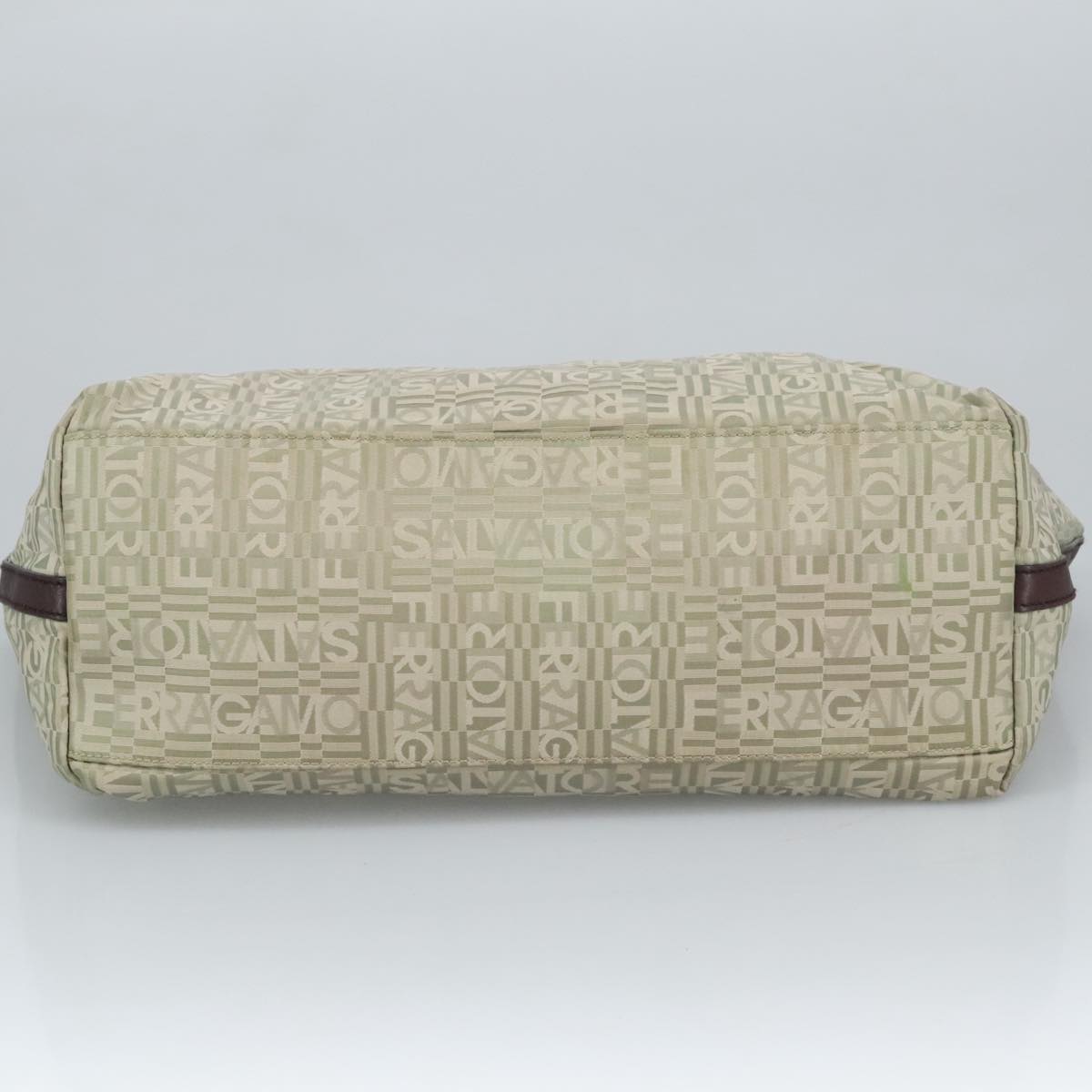 Salvatore Ferragamo Gancini Tote Bag Canvas Green Brown Silver Auth bs19496