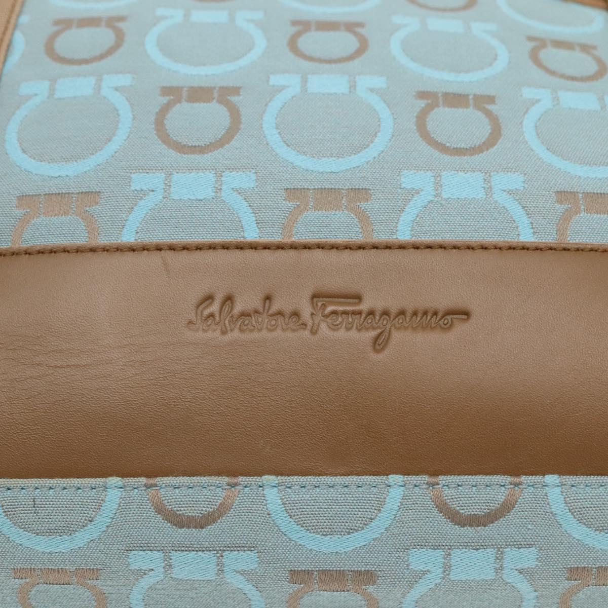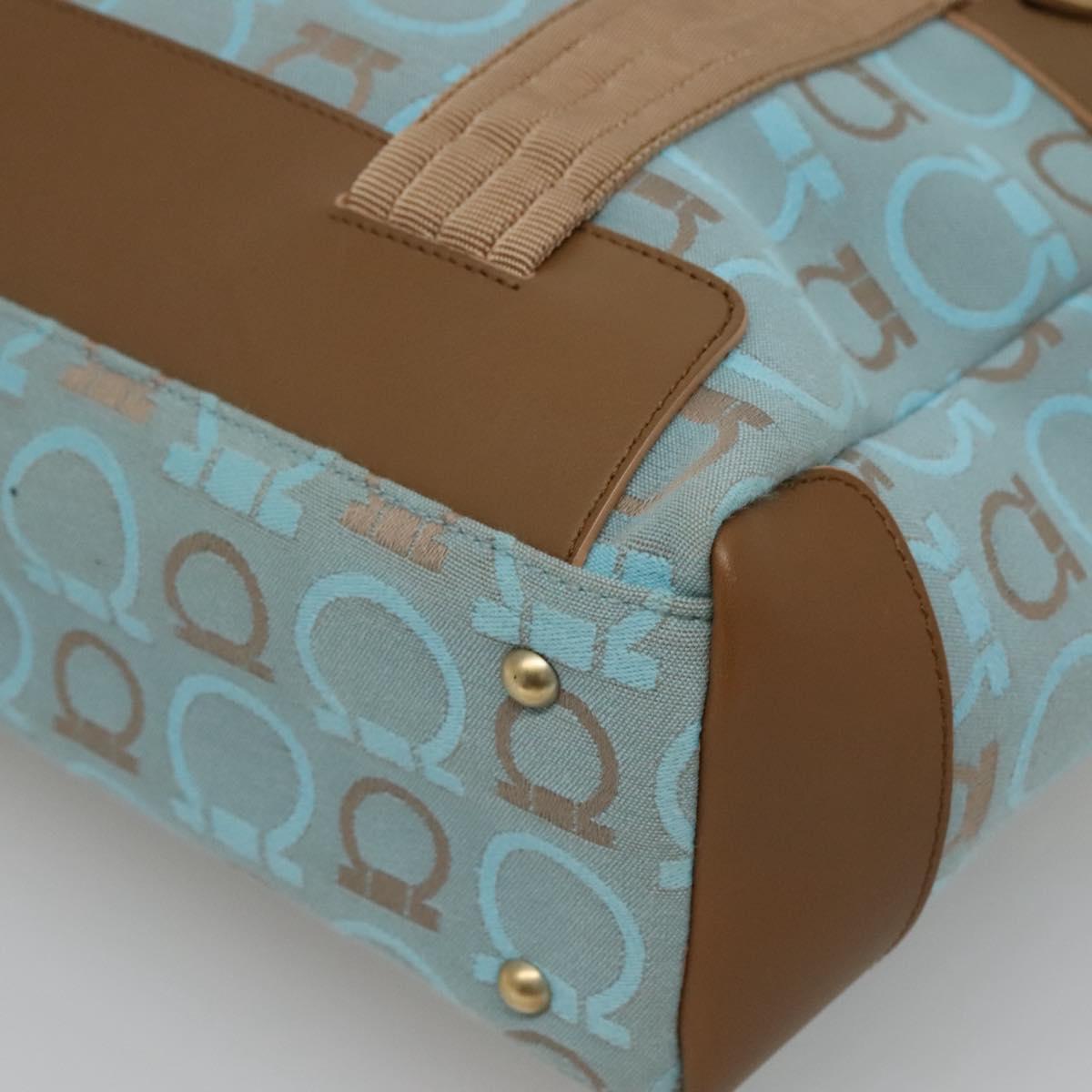 Salvatore Ferragamo Gancini Tote Bag Canvas Leather Light Blue Gold Auth gh706