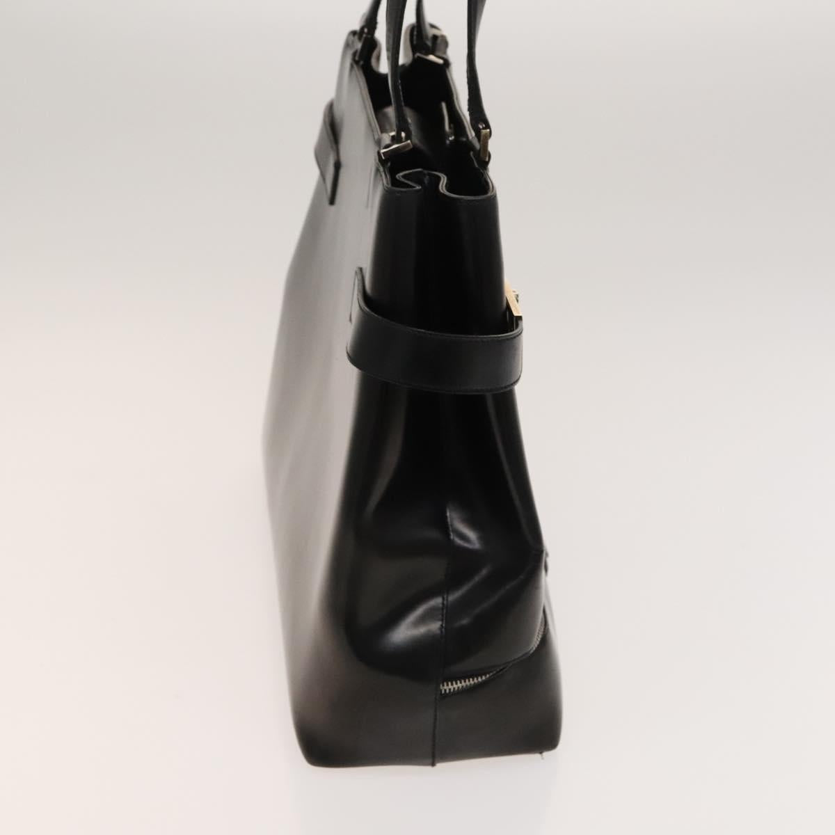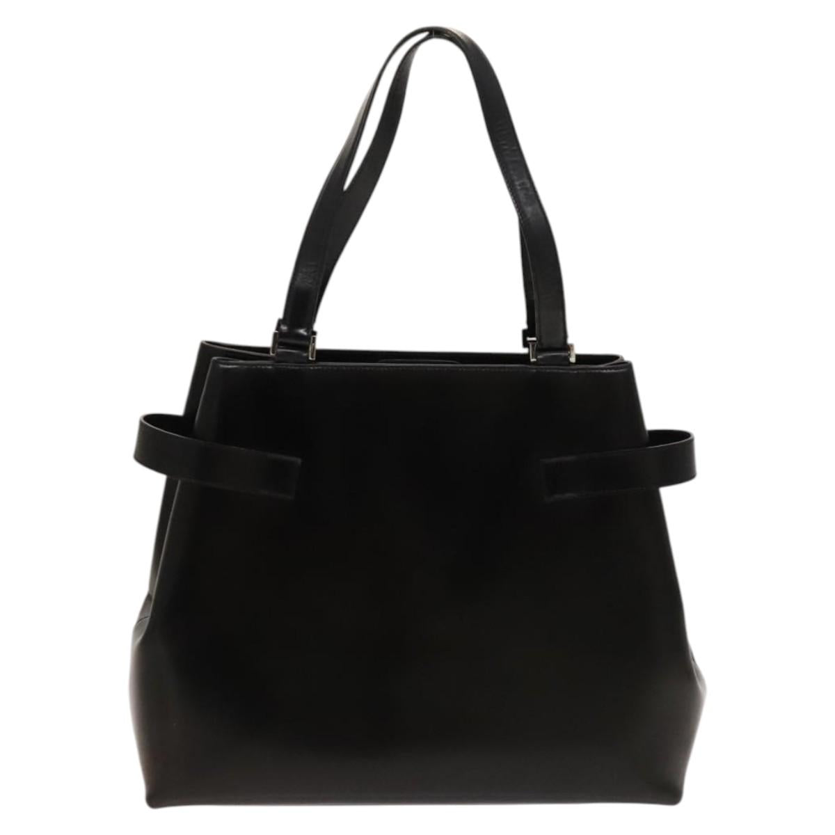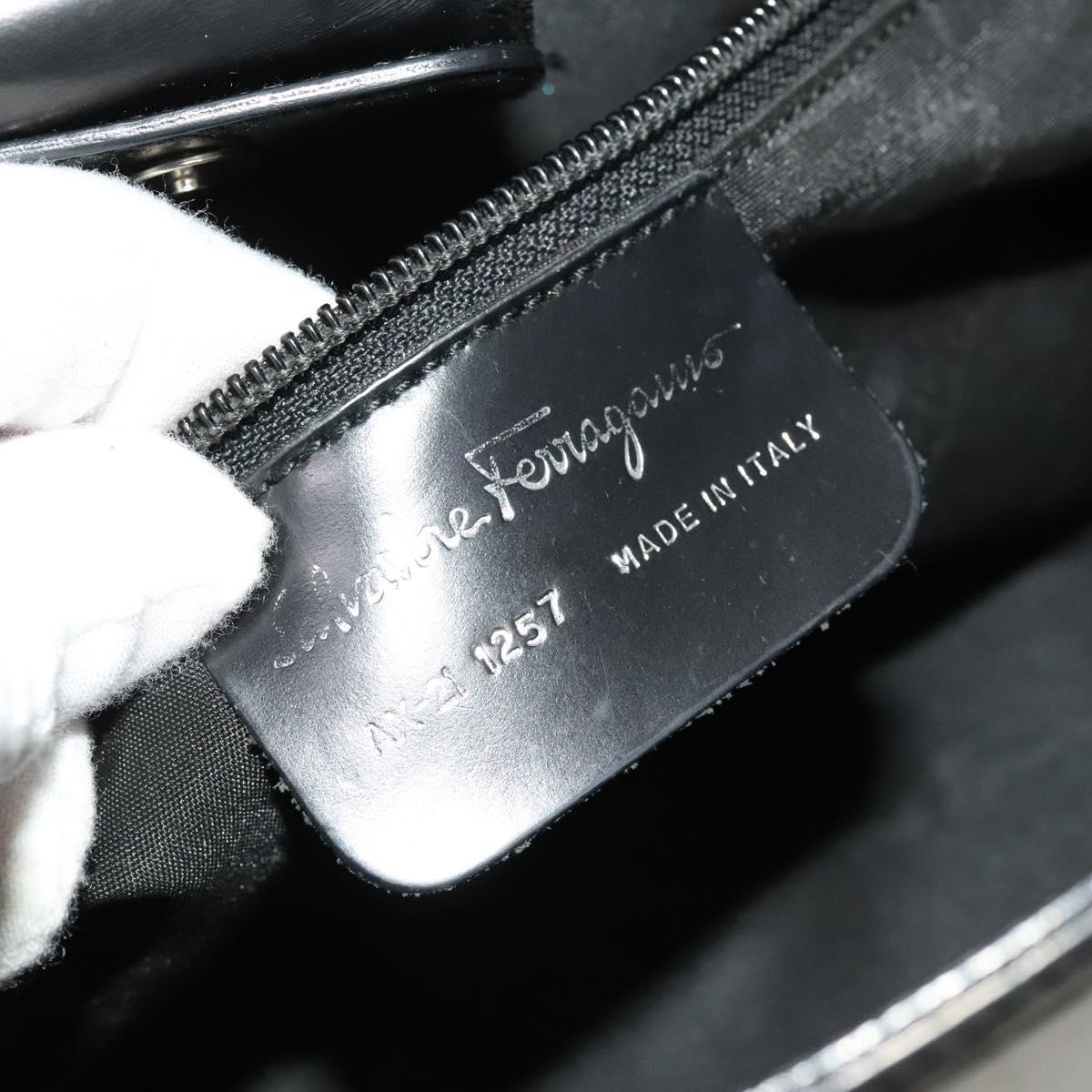 Salvatore Ferragamo Gancini Tote Bag Leather Black Silver Auth bs27292