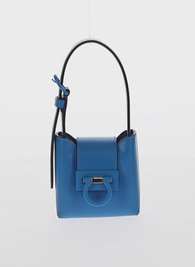 Salvatore Ferragamo Gancini Trifoglio Mini Hand Bag Leather Blue Auth 145244M