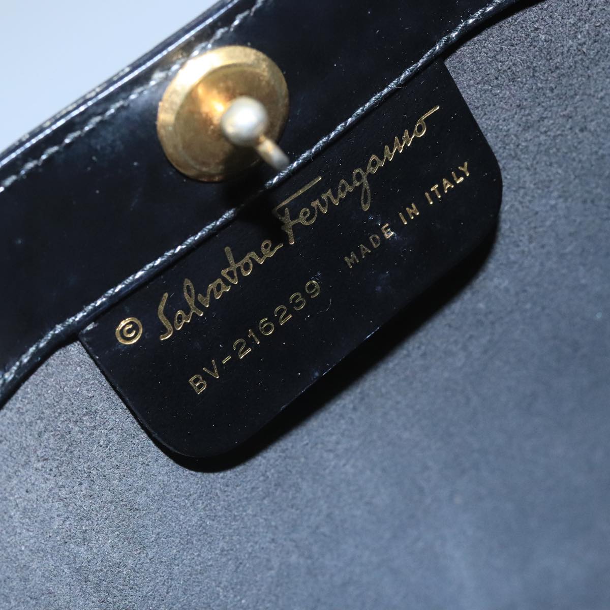 Salvatore Ferragamo Hand Bag Enamel Black Clear Gold Auth 99177