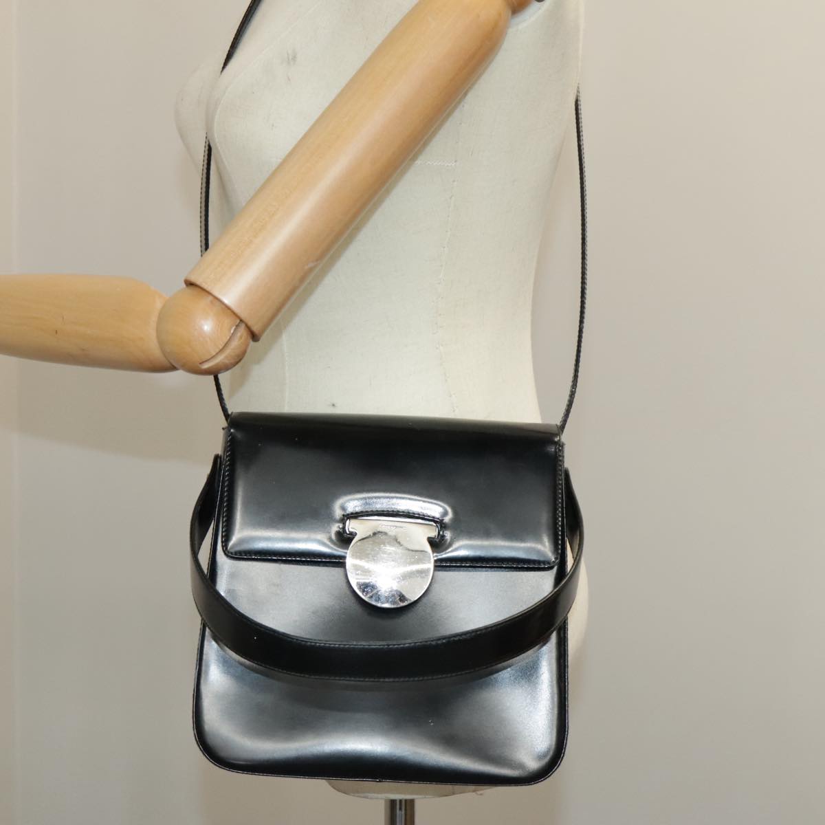 Salvatore Ferragamo Hand Bag Leather 2way Black Silver Auth bs19766