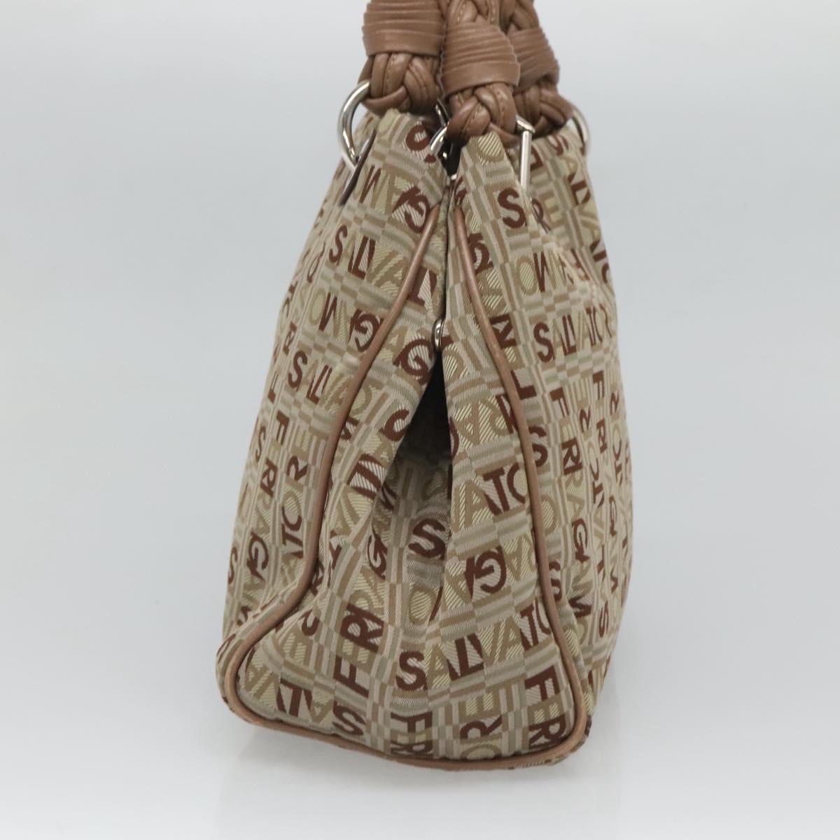 Salvatore Ferragamo Hand Bag Nylon Brown Silver Auth 125909