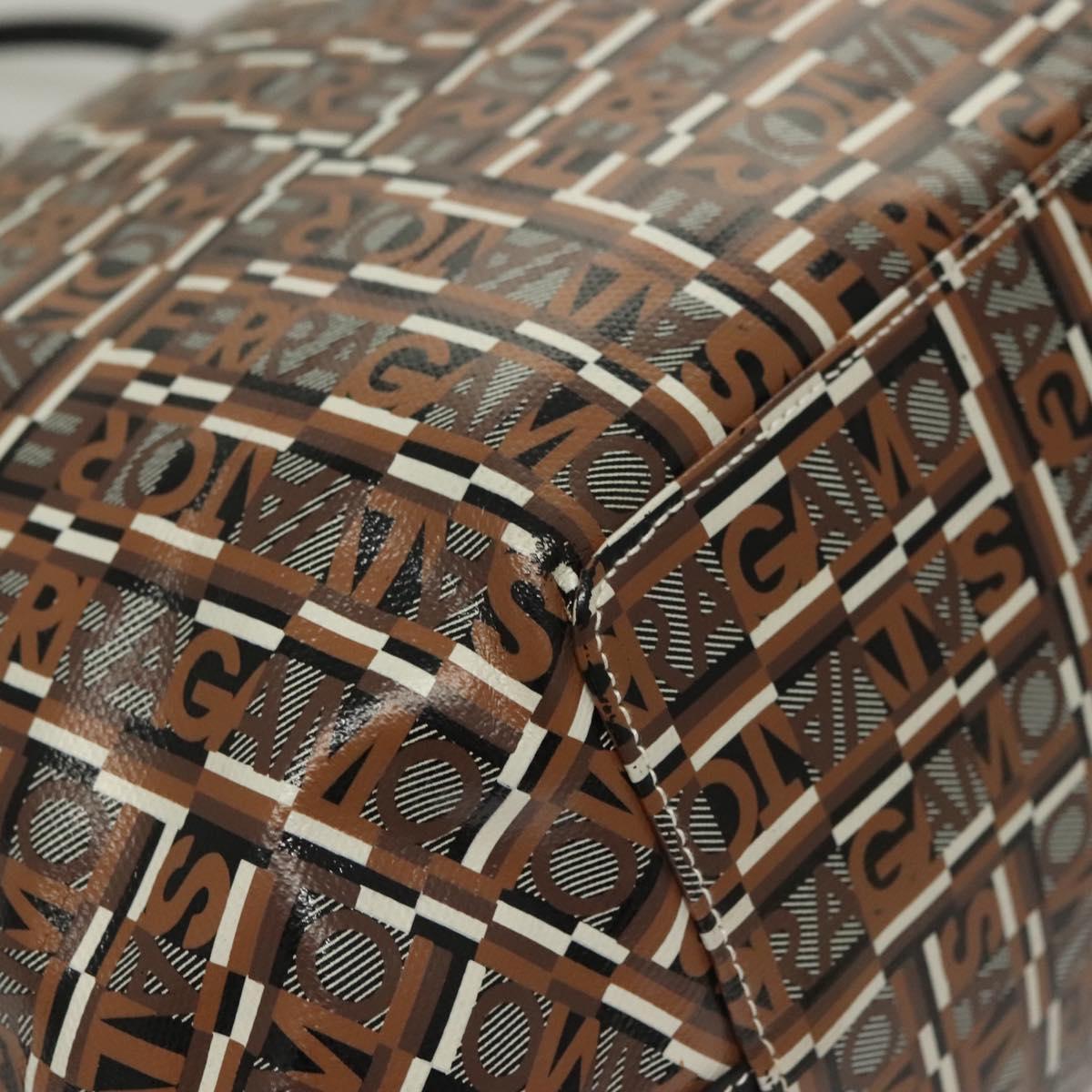 Salvatore Ferragamo Hand Bag PVC Brown Silver Auth 133394