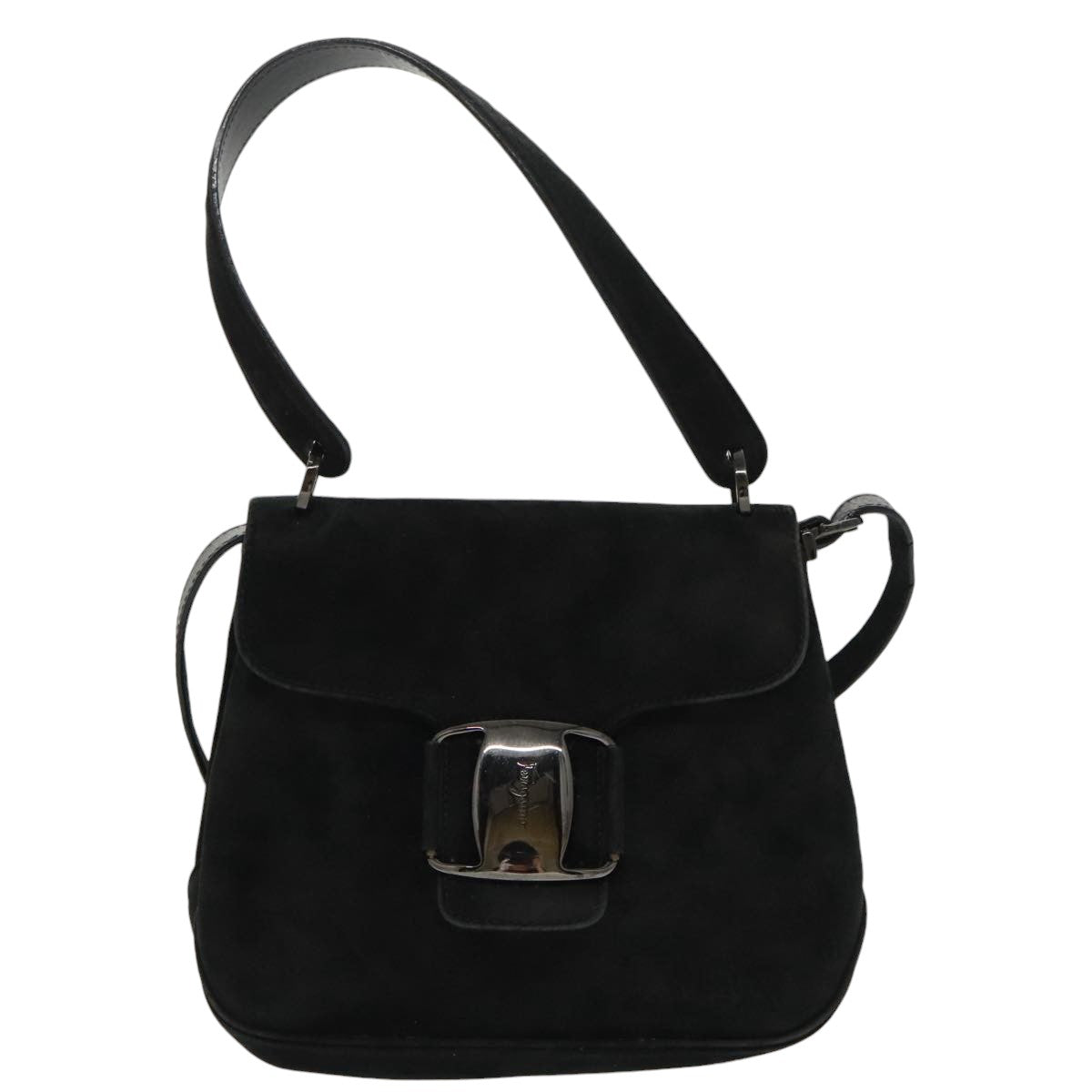 Salvatore Ferragamo Hand Bag Suede 2way Black Silver Auth bs20078