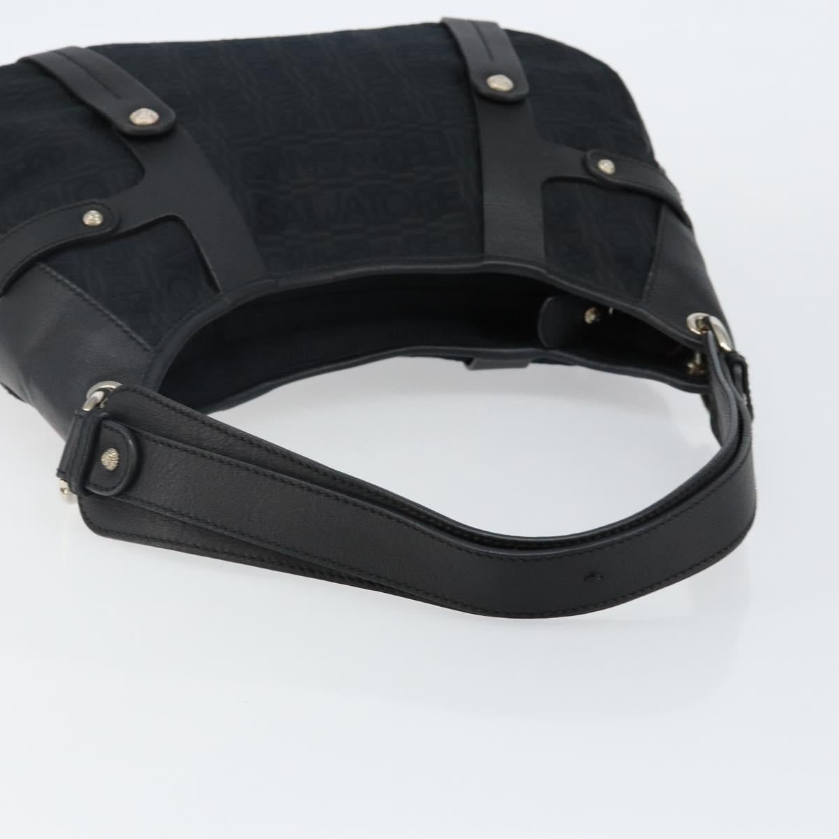 Salvatore Ferragamo Shoulder Bag Canvas Black Silver Auth hk2987