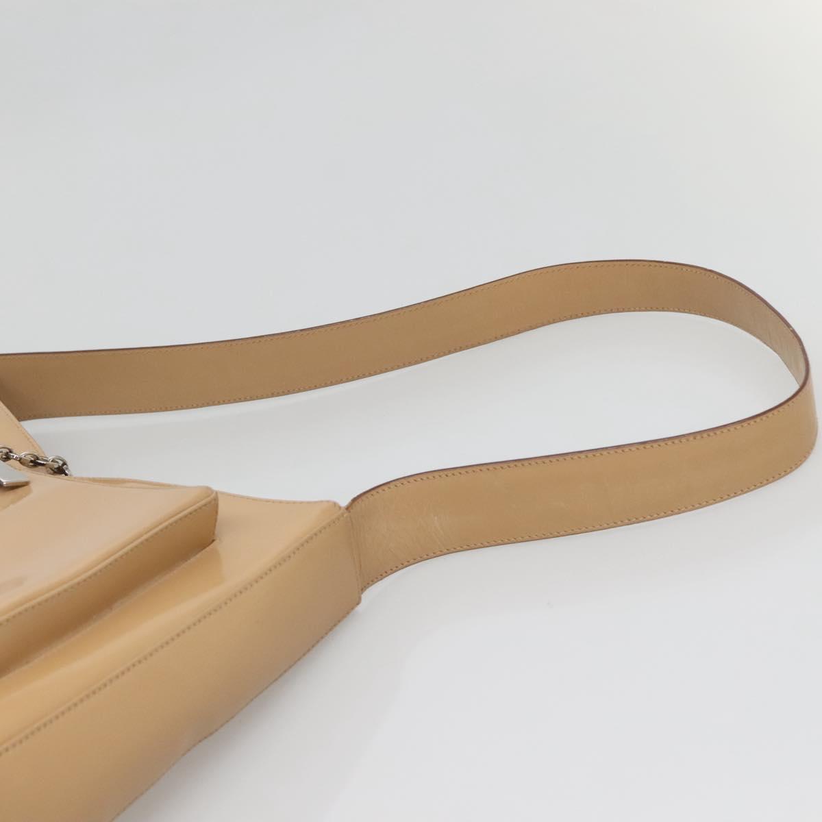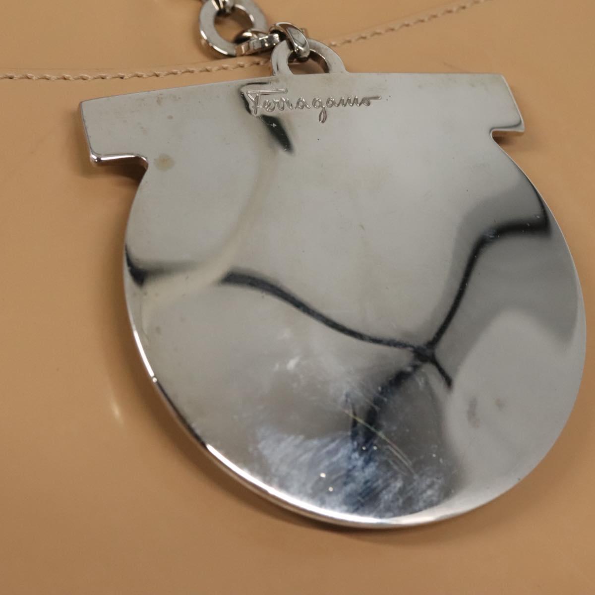 Salvatore Ferragamo Shoulder Bag Enamel Beige Silver Auth bs29120