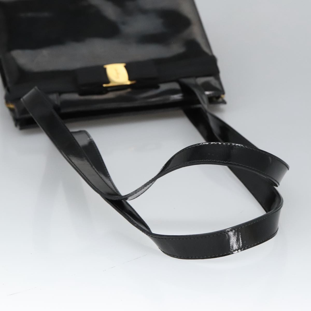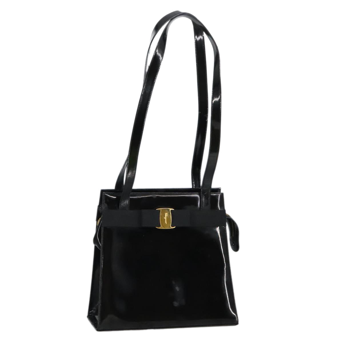 Salvatore Ferragamo Shoulder Bag Enamel Black Gold Auth bs19918