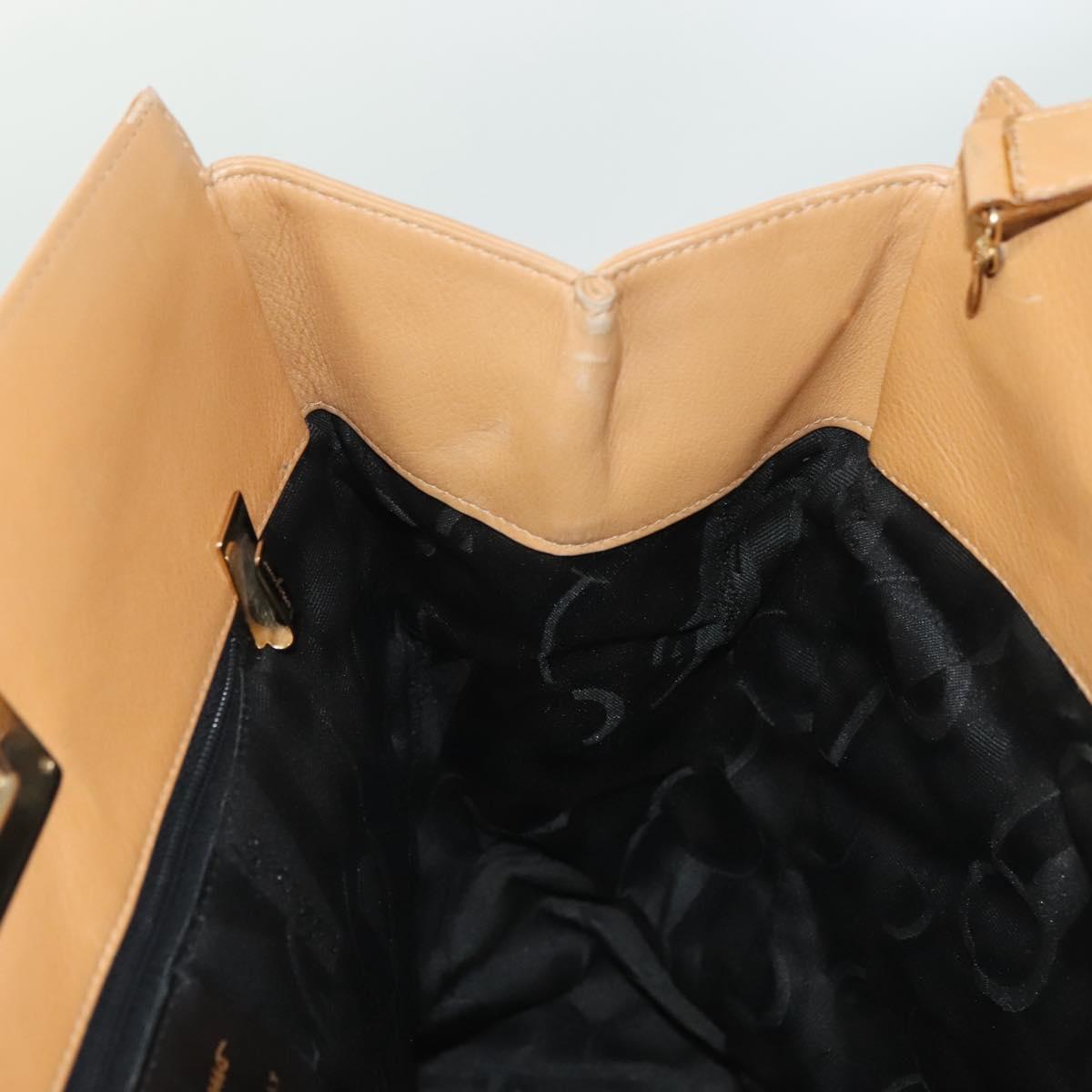 Salvatore Ferragamo Shoulder Bag Leather Beige Gold Auth bs28483