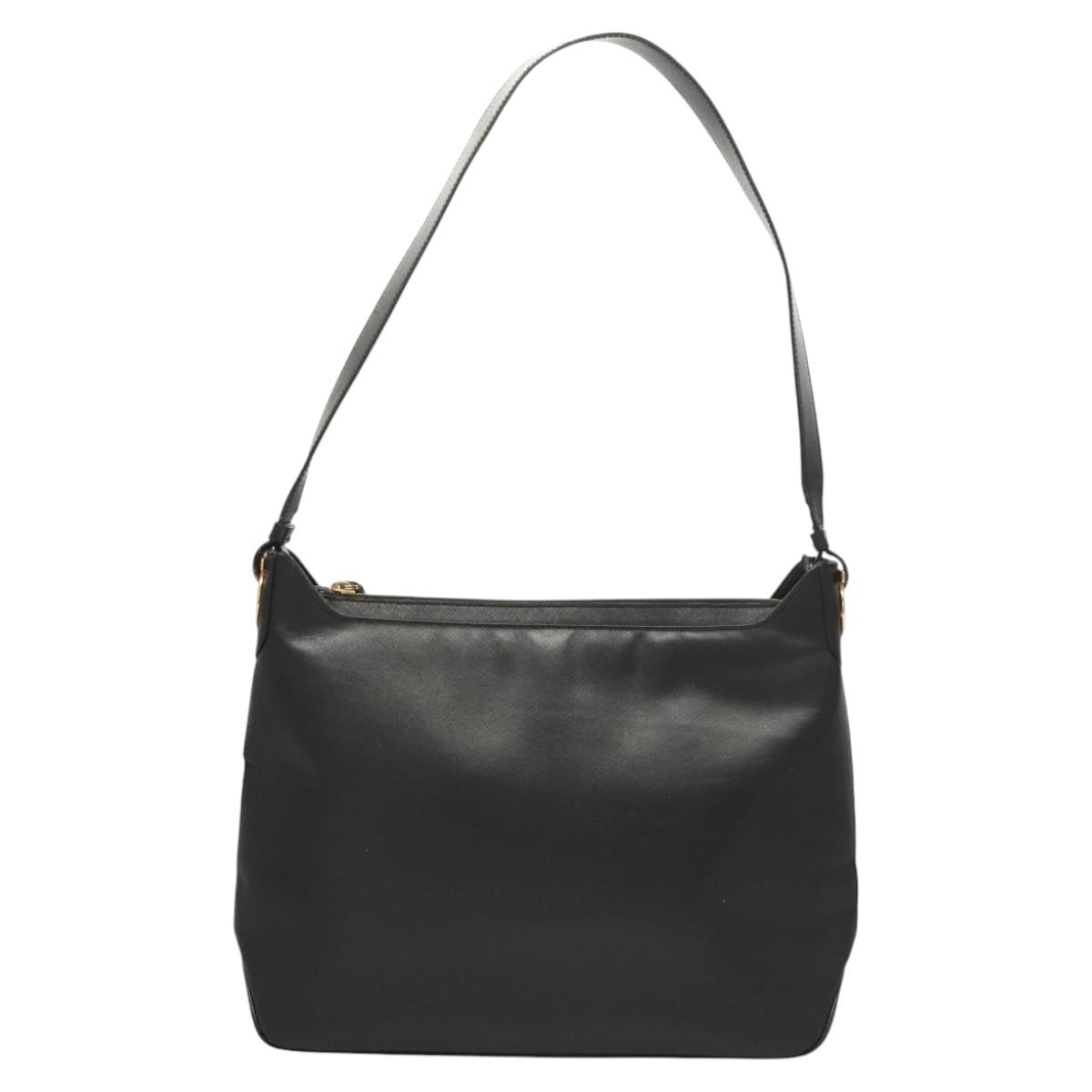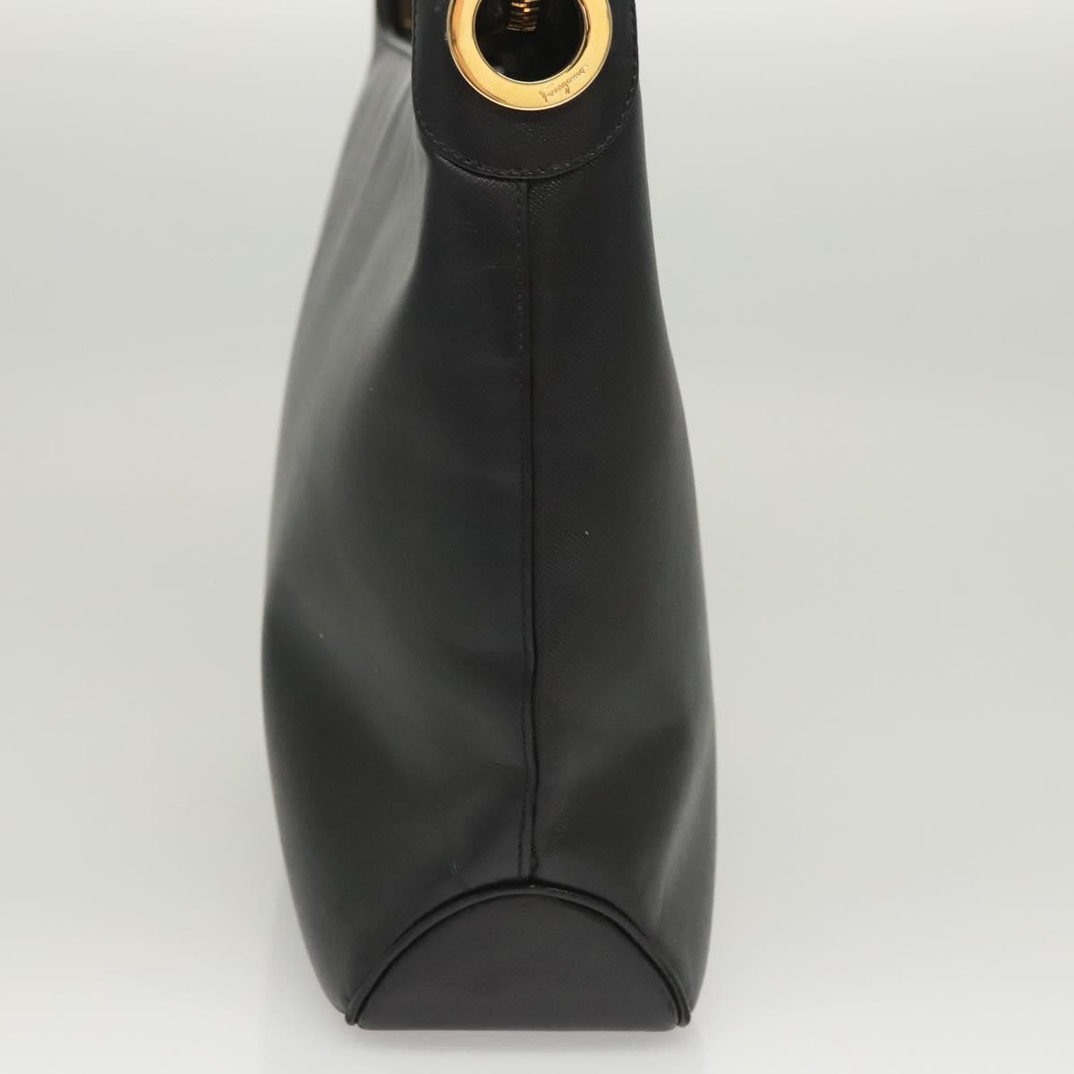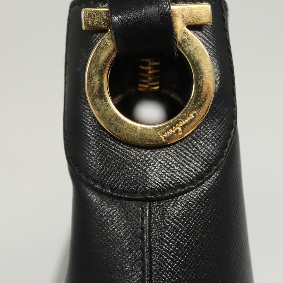 Salvatore Ferragamo Shoulder Bag Leather Black Gold Auth bs26401