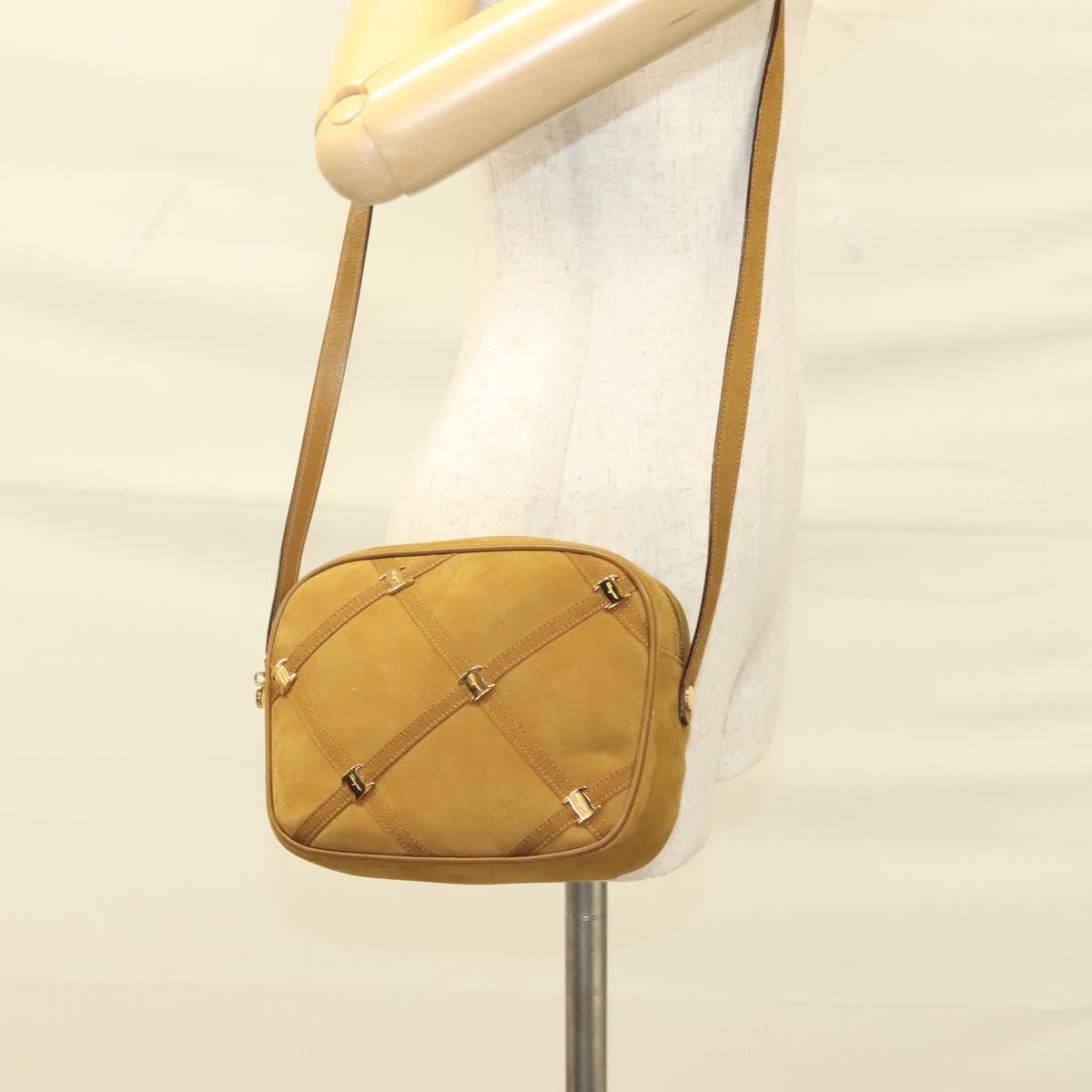 Salvatore Ferragamo Shoulder Bag Suede Brown Gold Auth BA3556