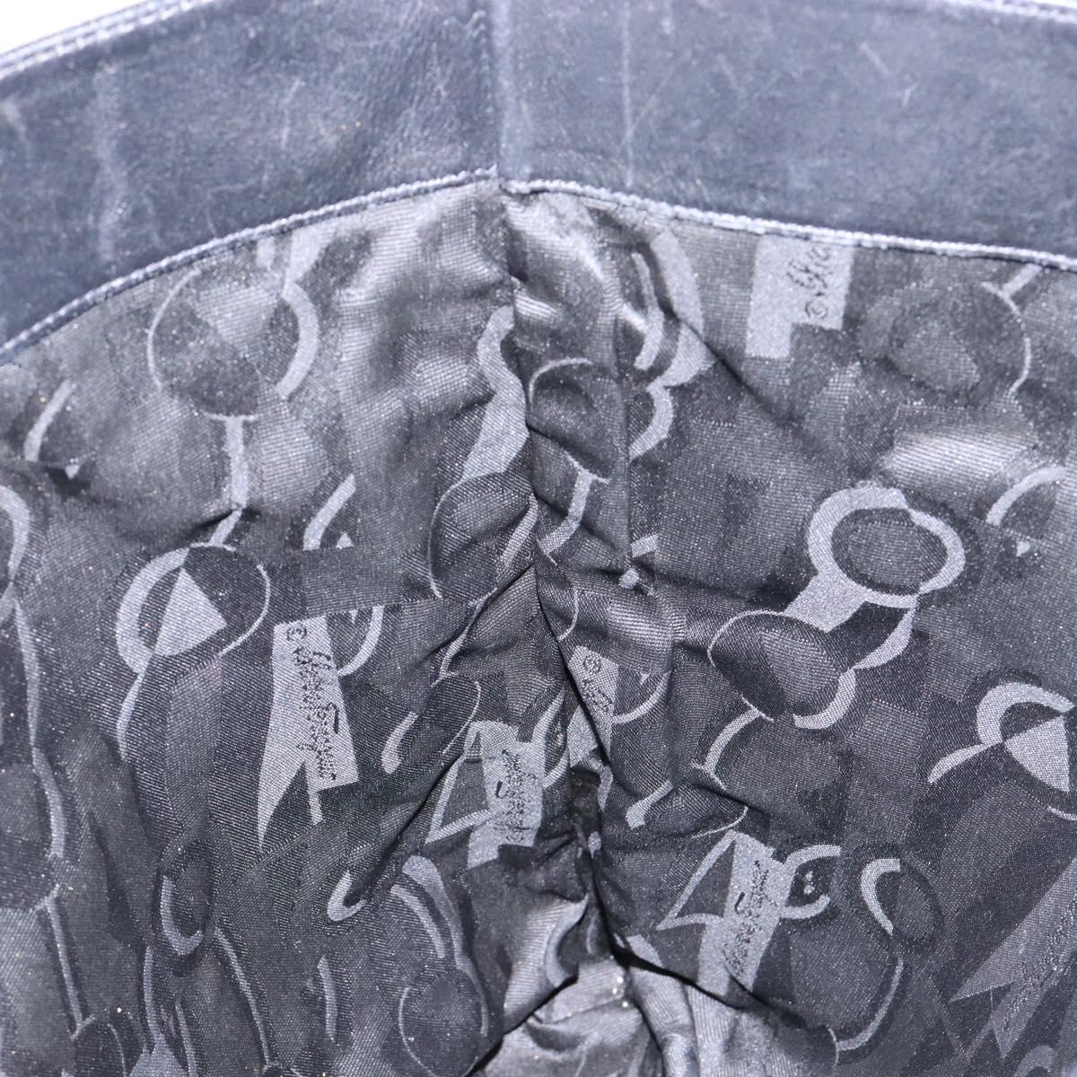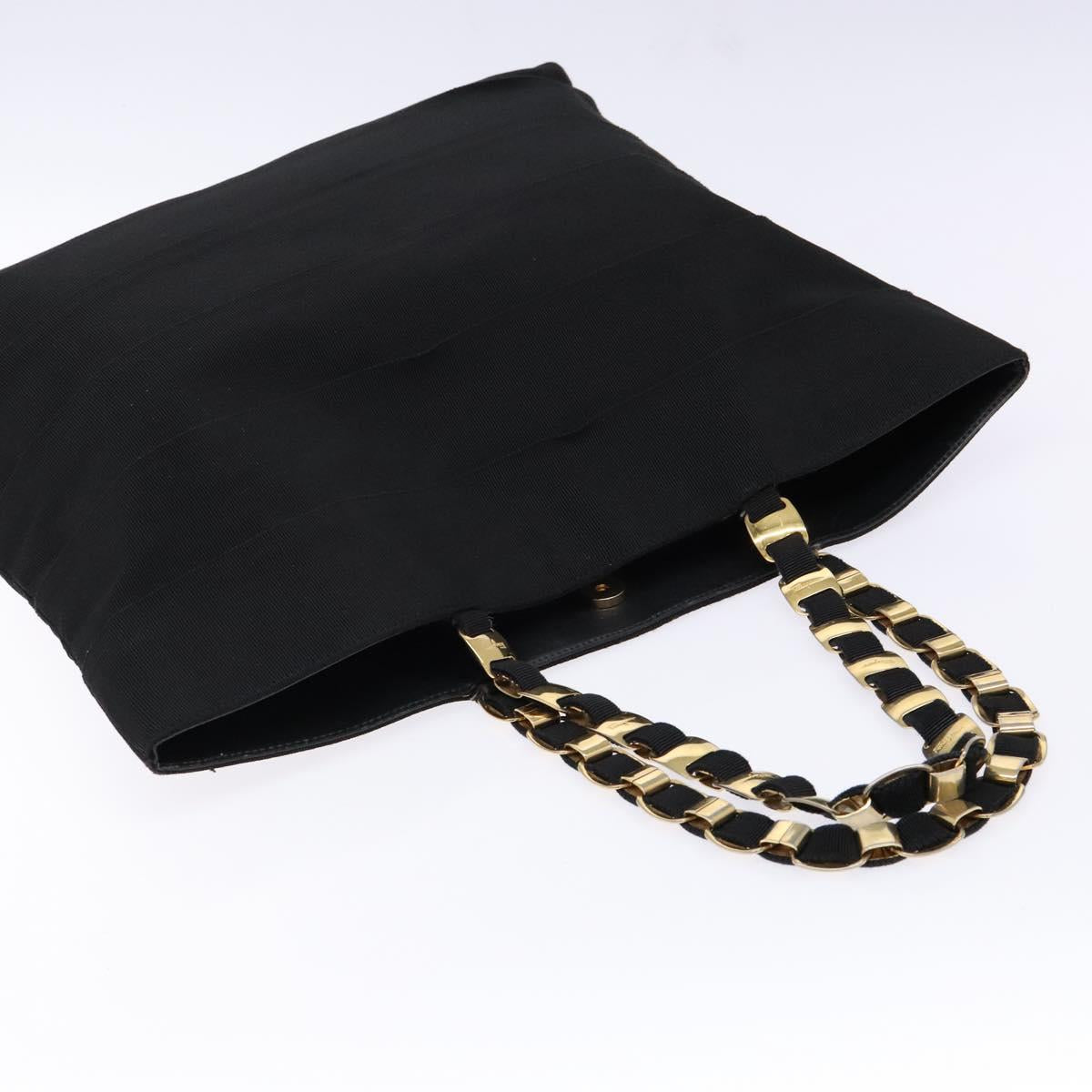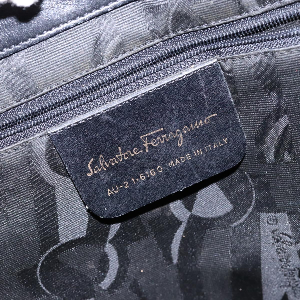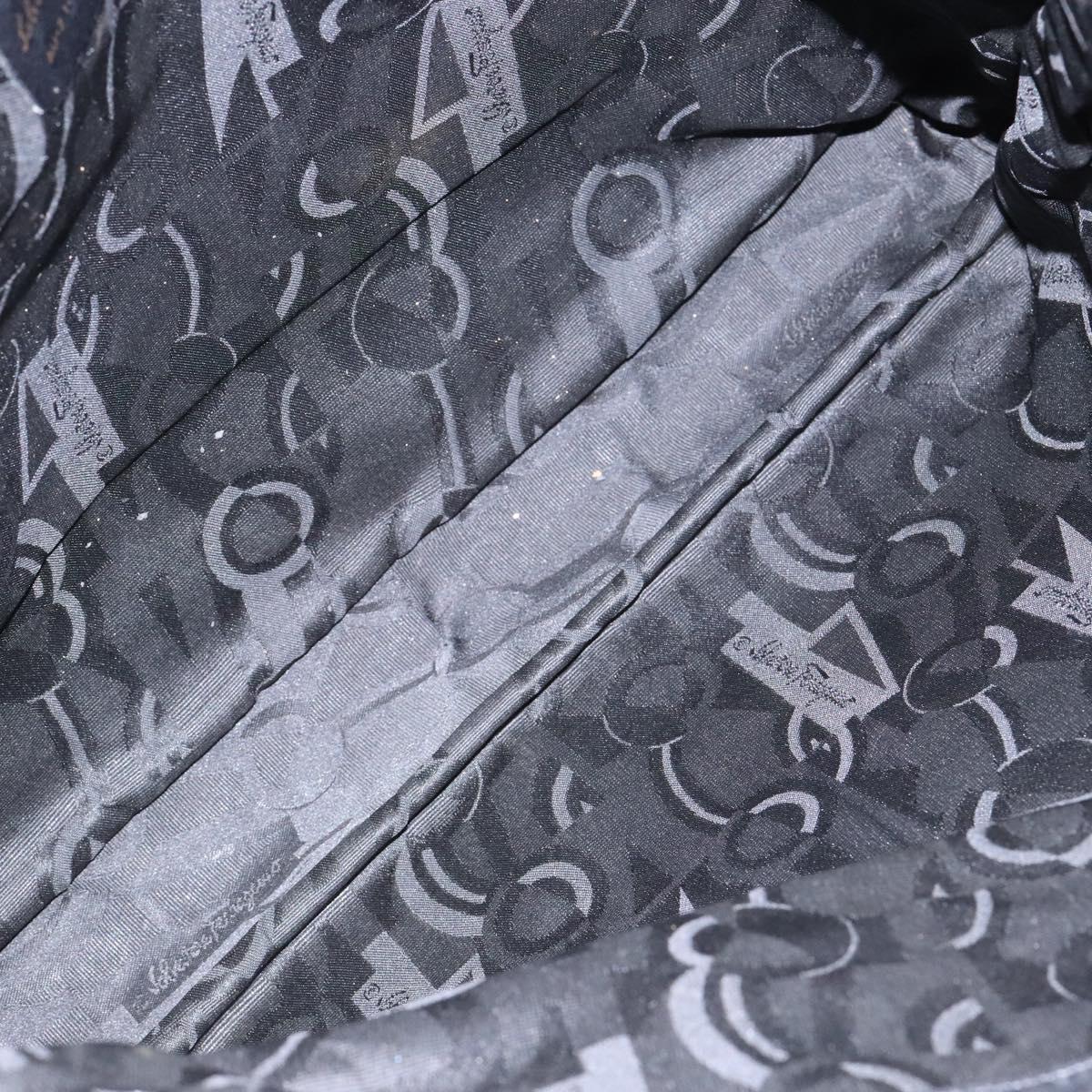 Salvatore Ferragamo Vala Chain Shoulder Bag Canvas Black Gold Auth 138299