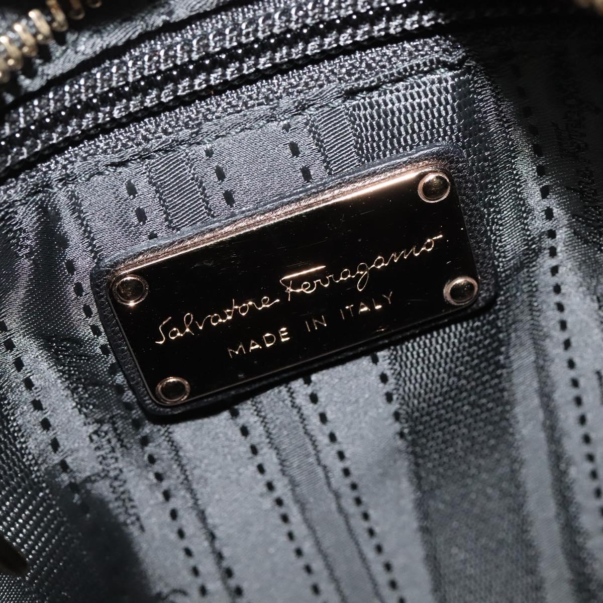 Salvatore Ferragamo Vala Hand Bag Enamel 2way Black Gold Auth bs28916