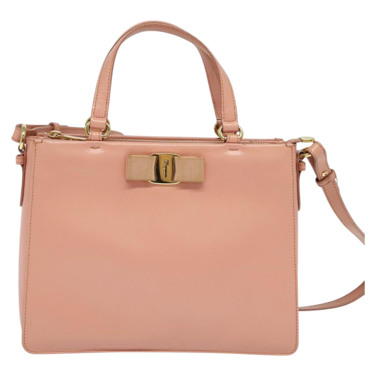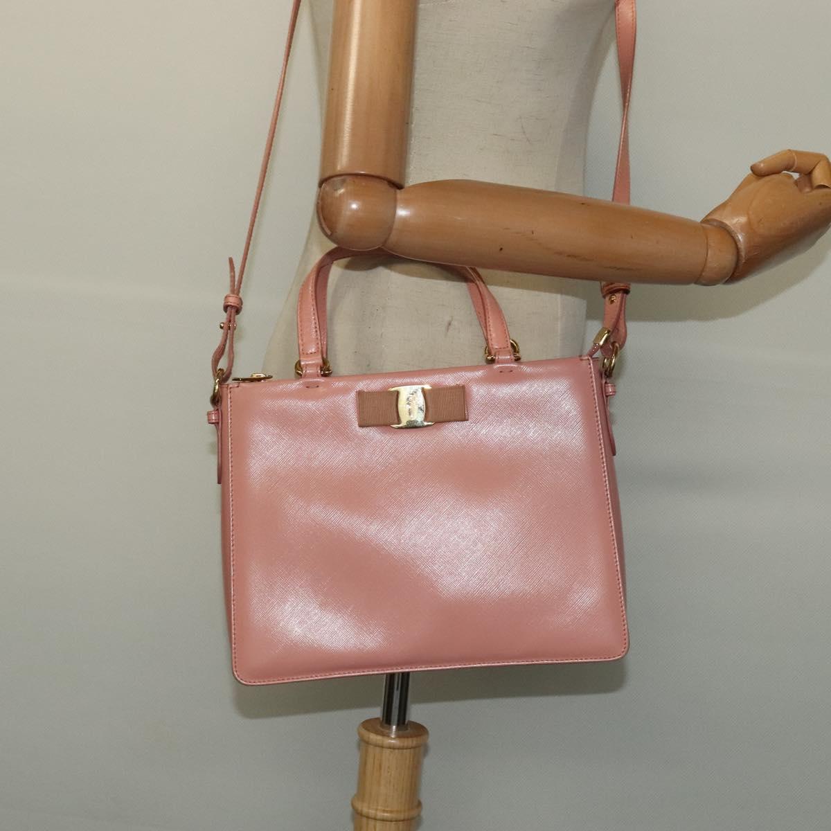 Salvatore Ferragamo Vala Hand Bag Leather 2way Pink Gold Auth 130110