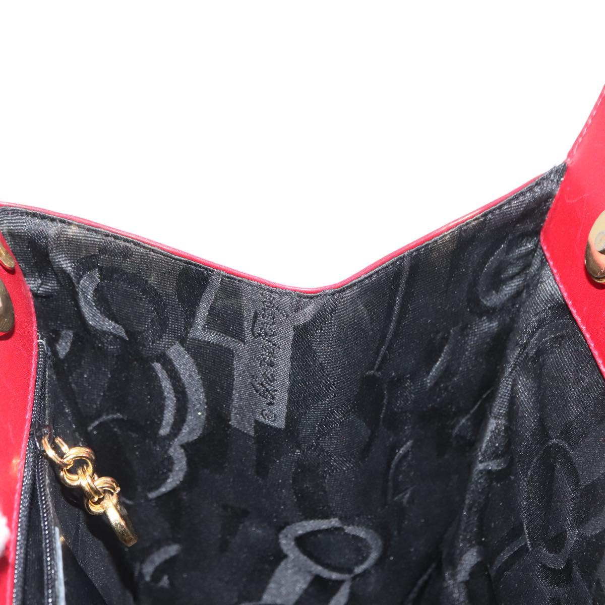 Salvatore Ferragamo Vala Hand Bag Leather 2way Red Gold Auth BA6584