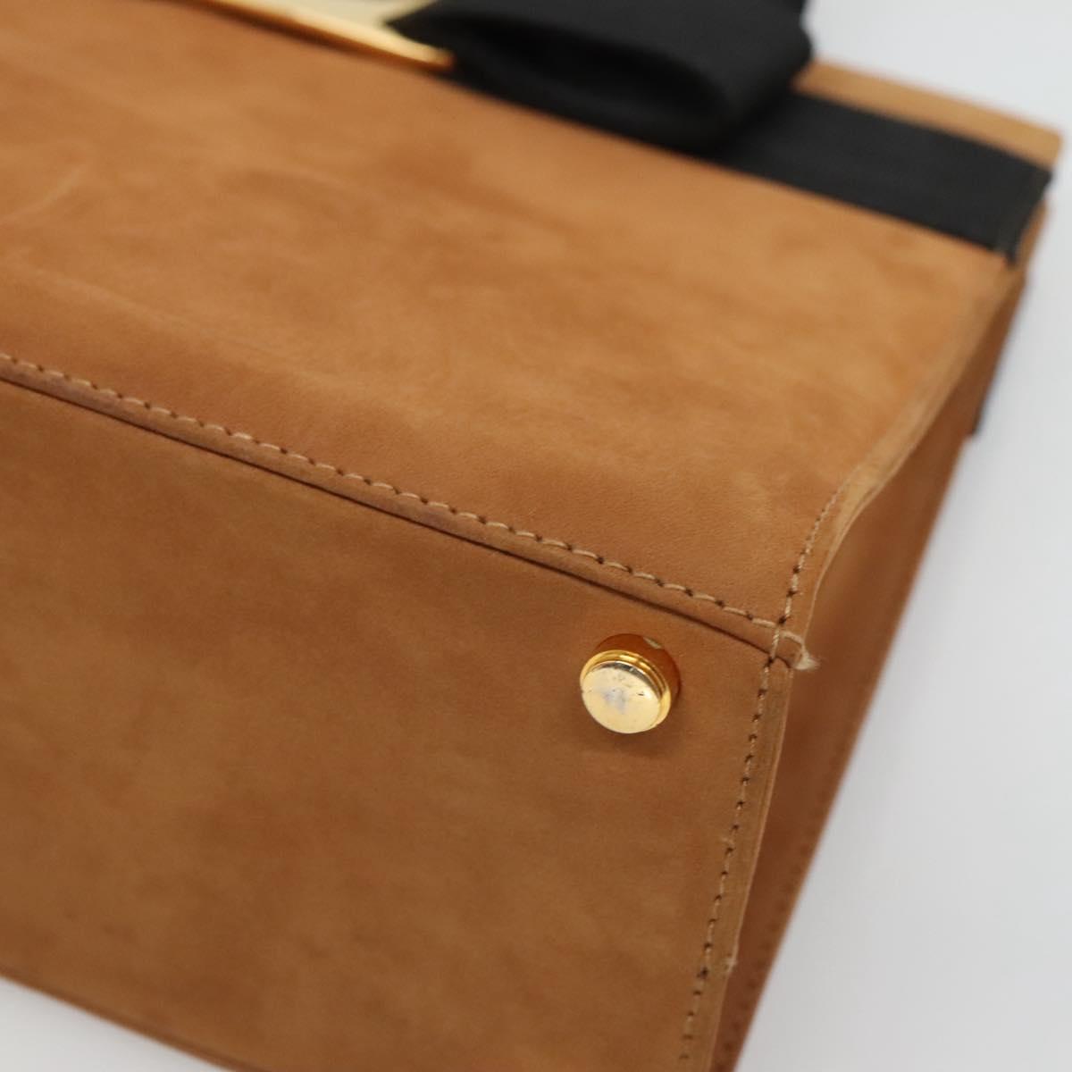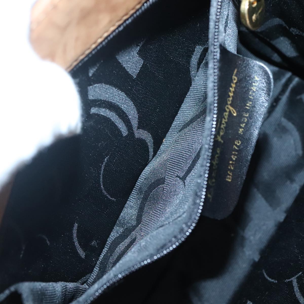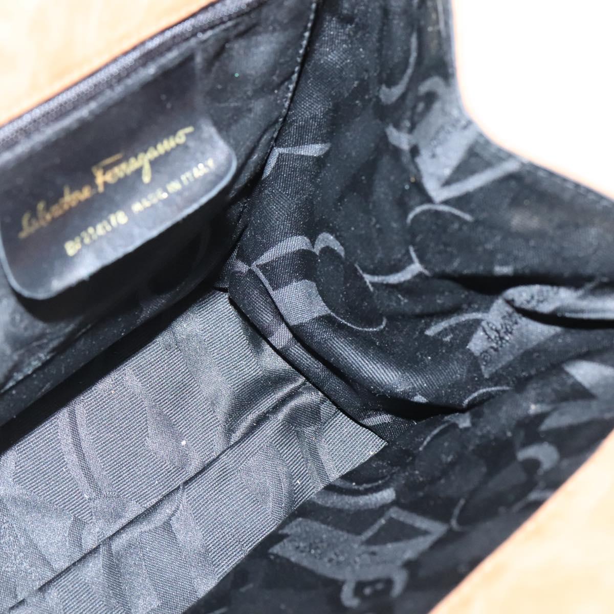 Salvatore Ferragamo Vala Hand Bag Suede Brown Gold Auth BA3464