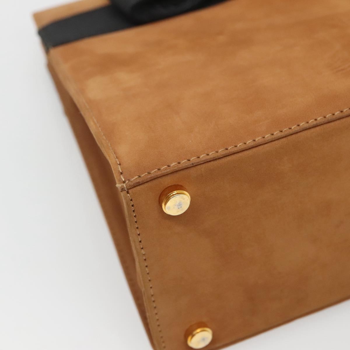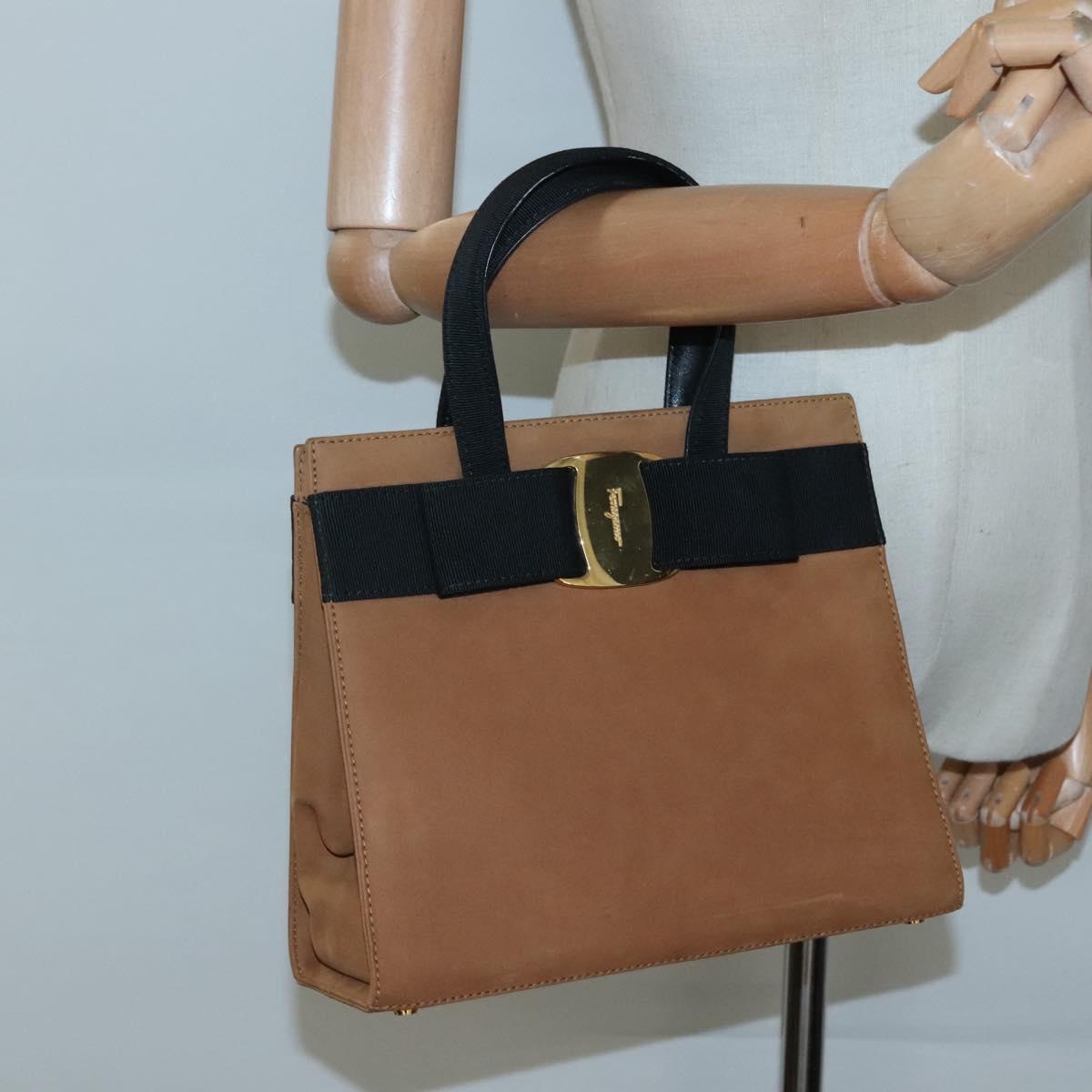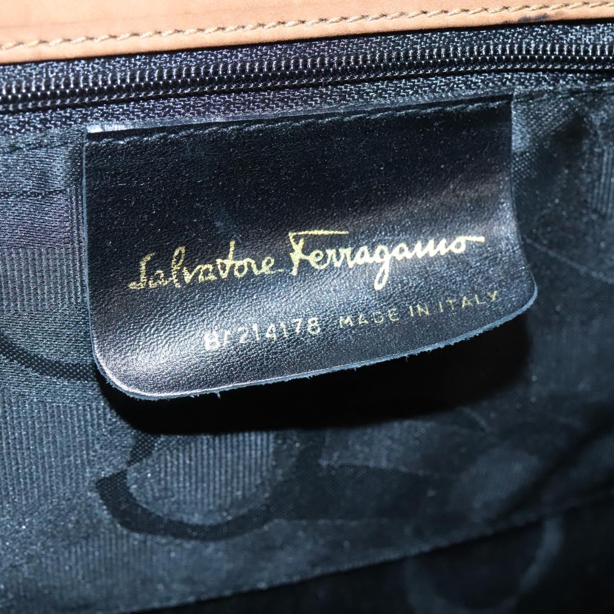 Salvatore Ferragamo Vala Hand Bag Suede Brown Gold Auth BA3464