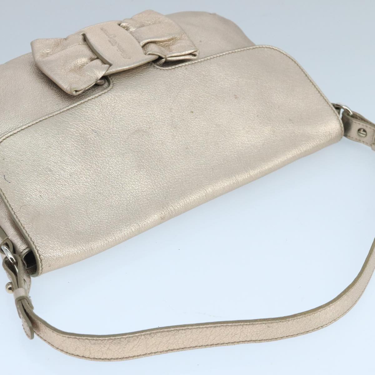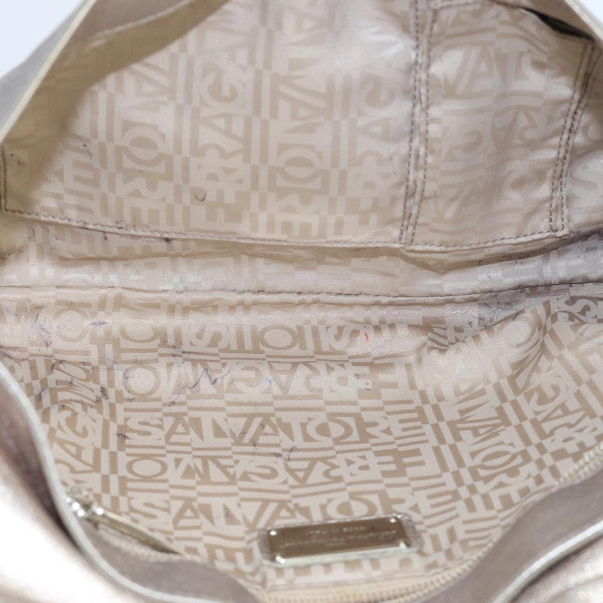Salvatore Ferragamo Vala Shoulder Bag Leather Champagne Gold Auth 104964