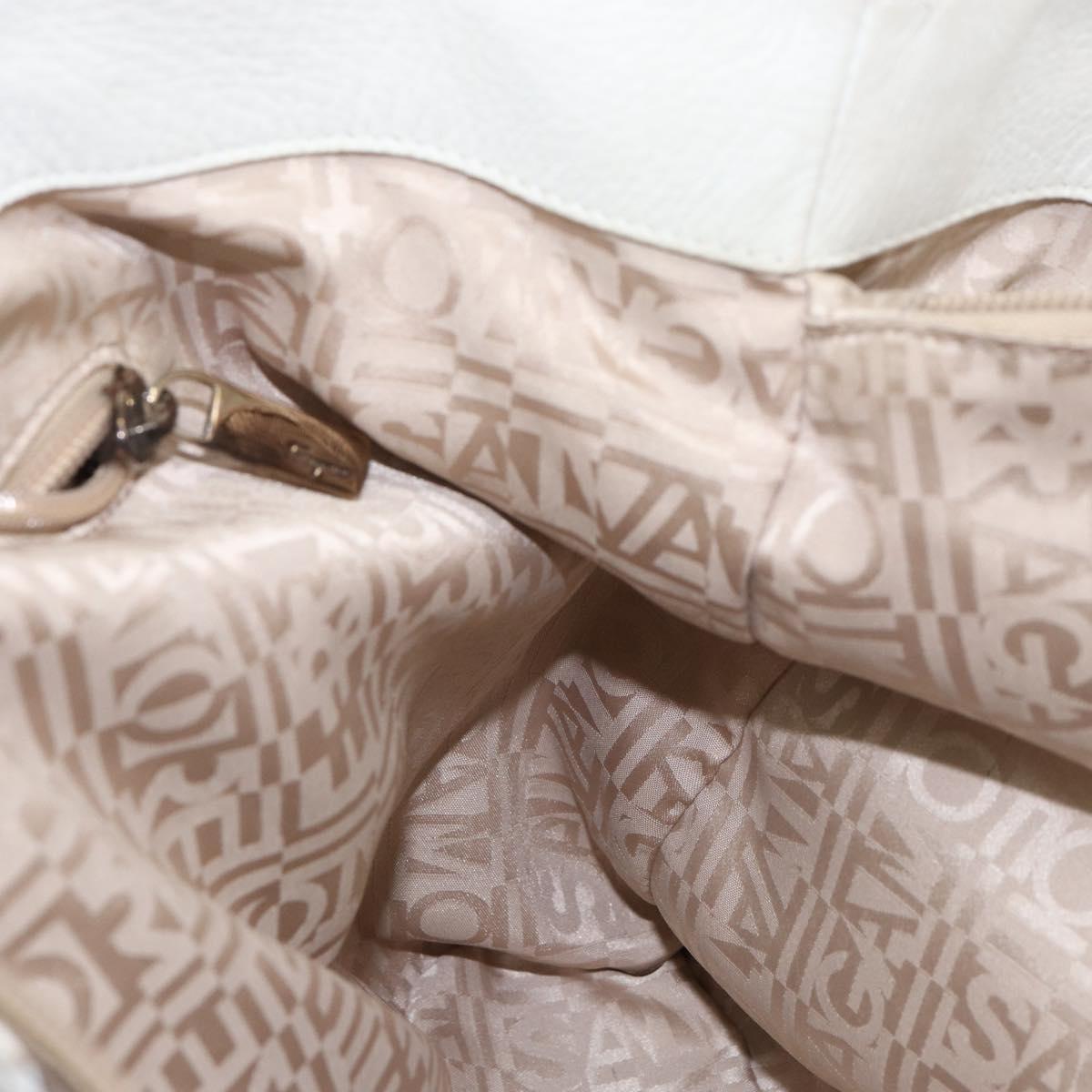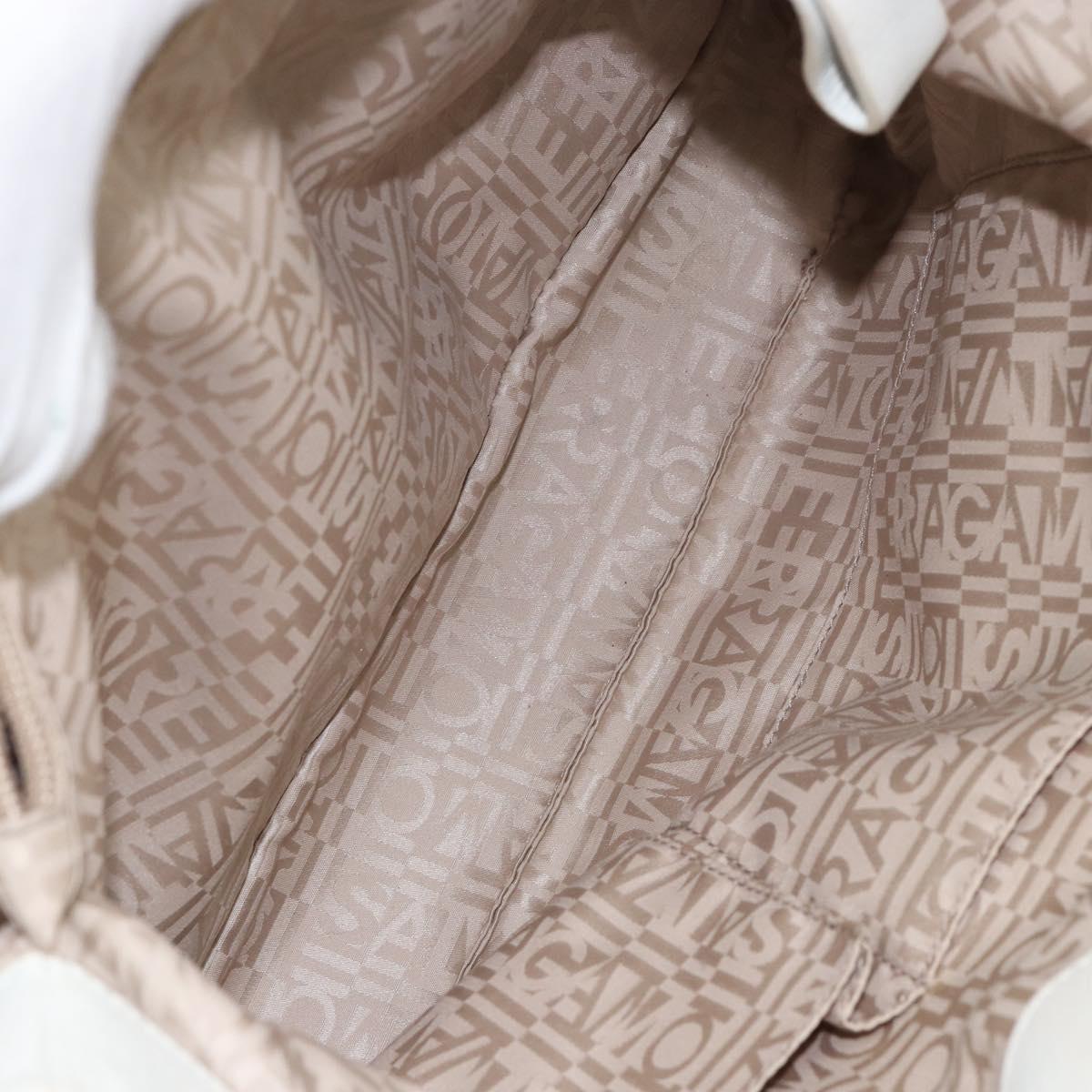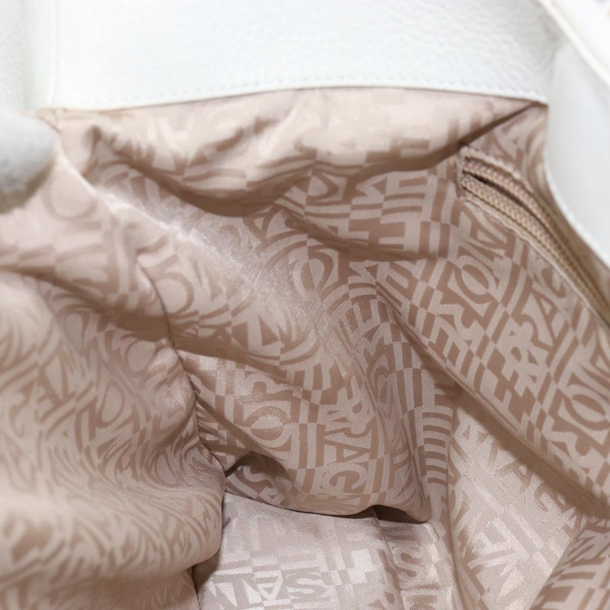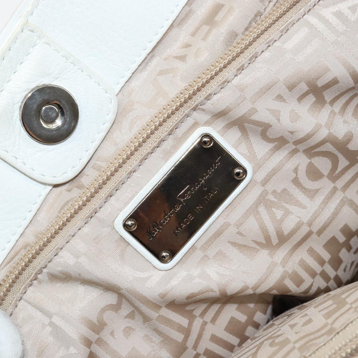Salvatore Ferragamo Vala Tote Bag Leather White Gold Auth BA6591