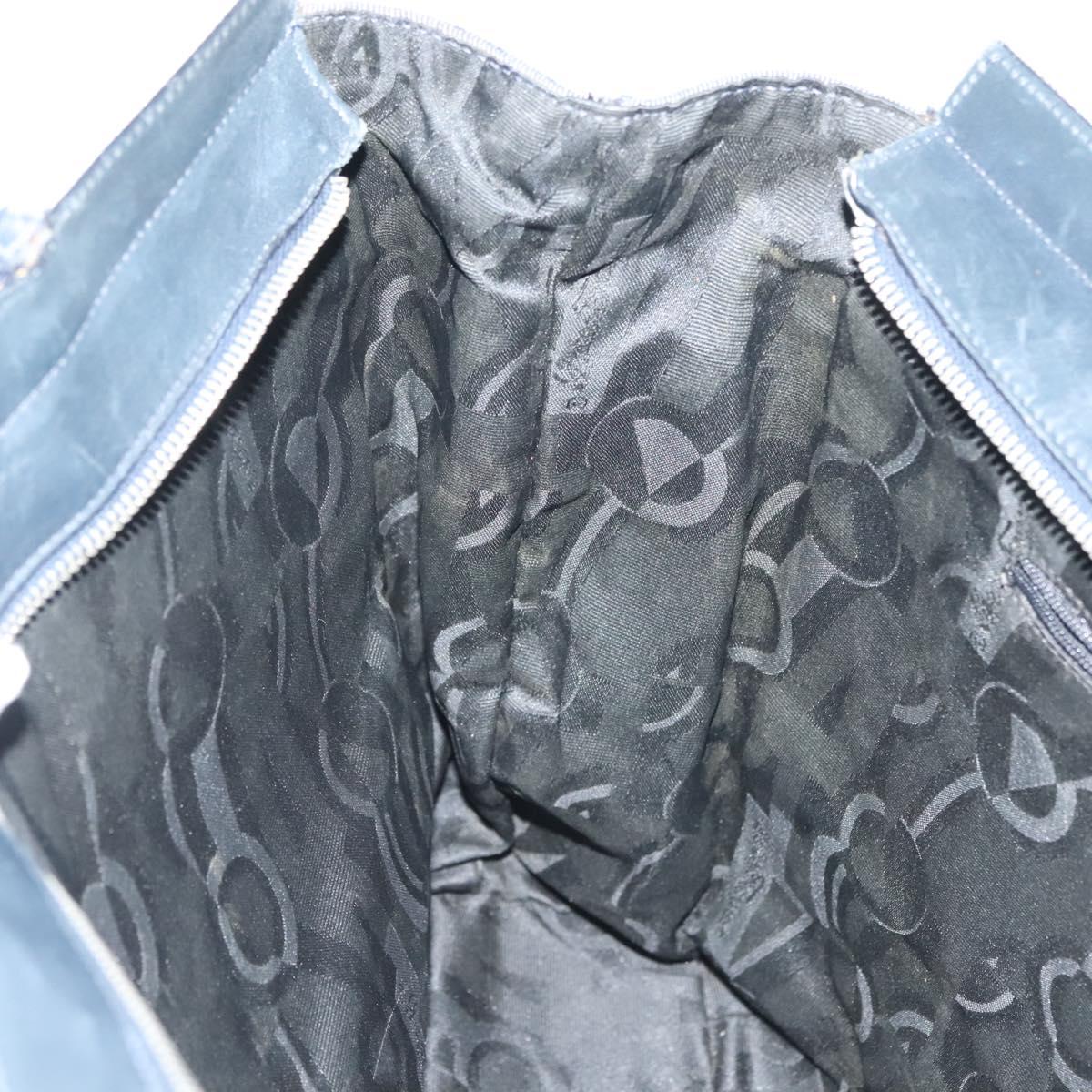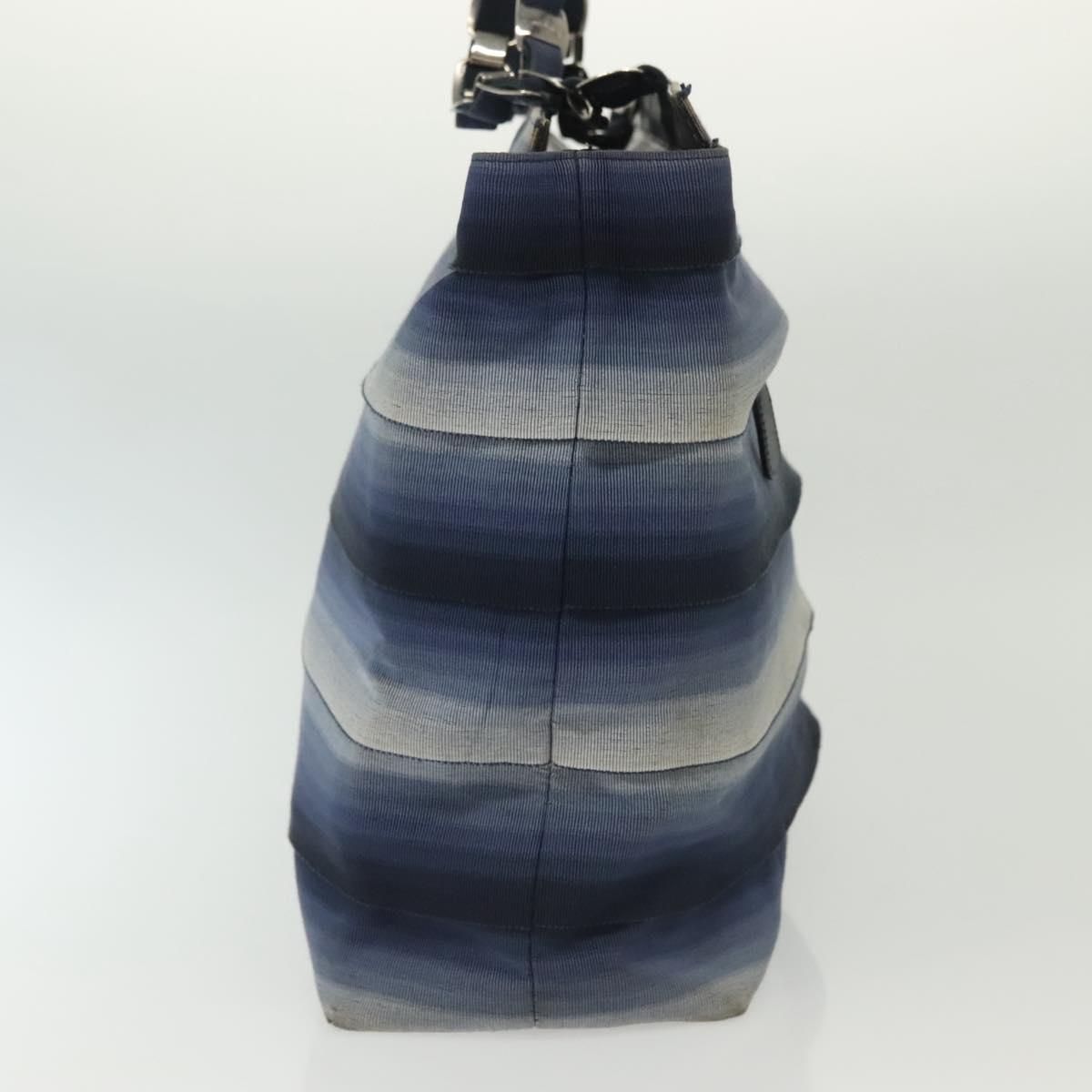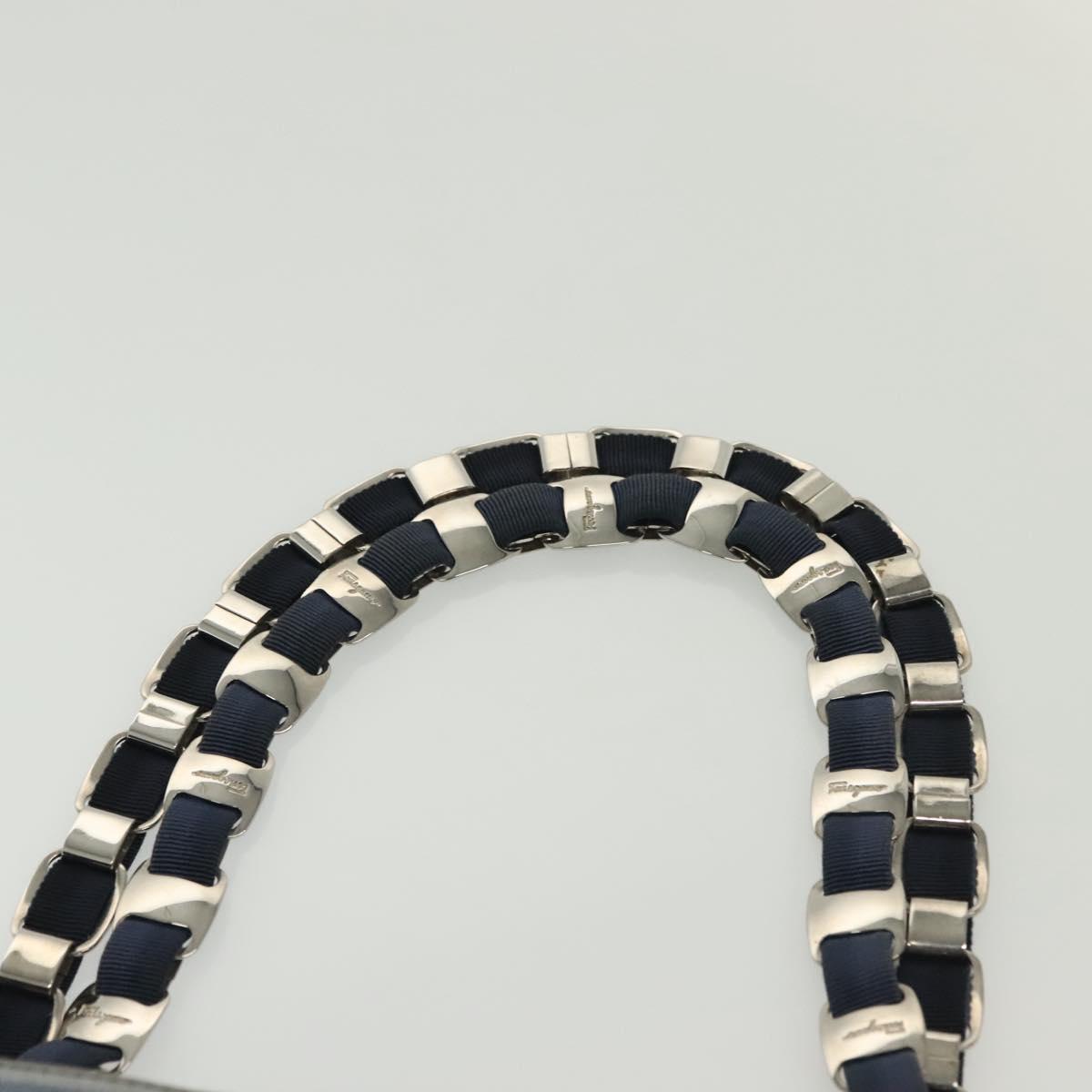 Salvatore Ferragamo Vala Vala Tote Bag Canvas Blue Silver Auth bs28721
