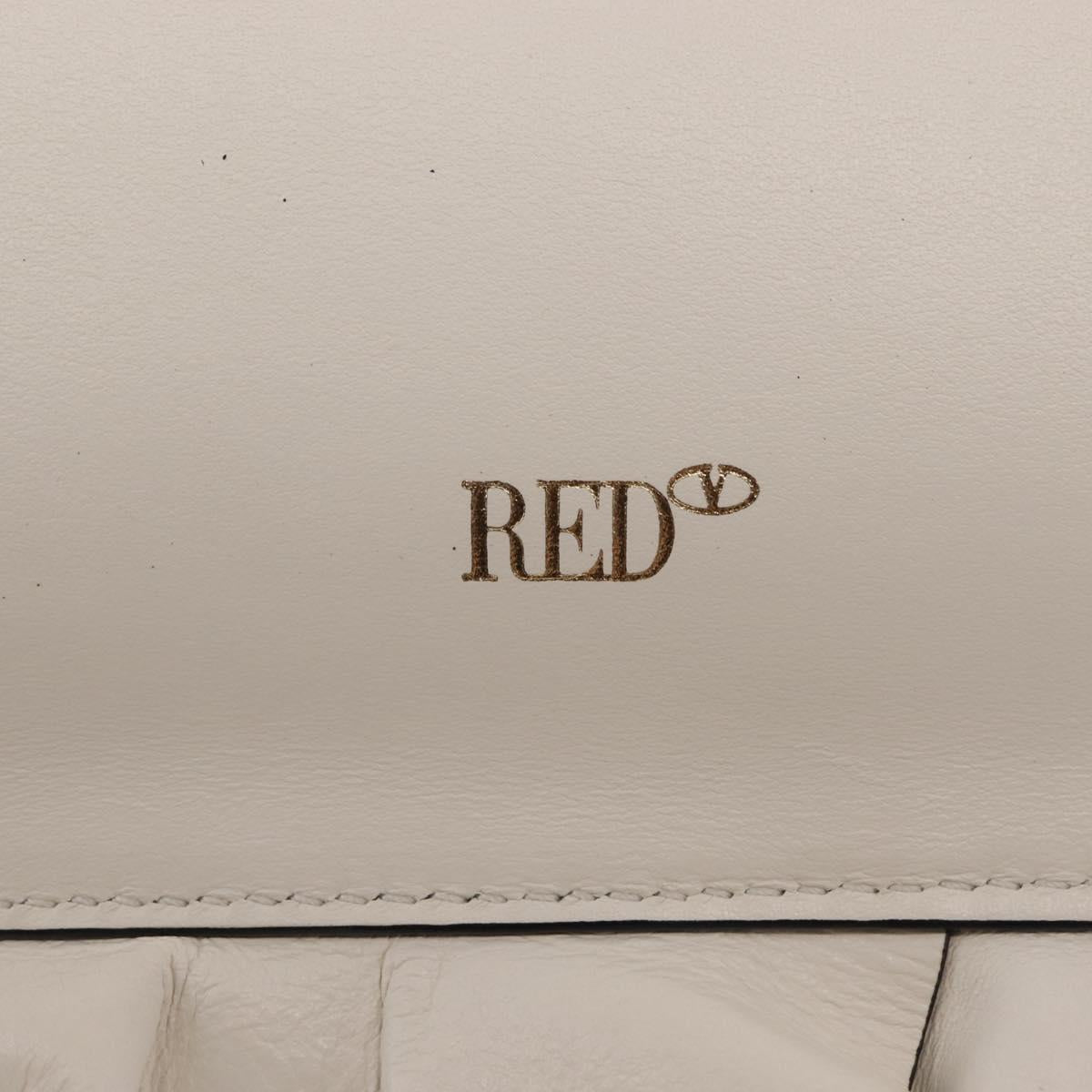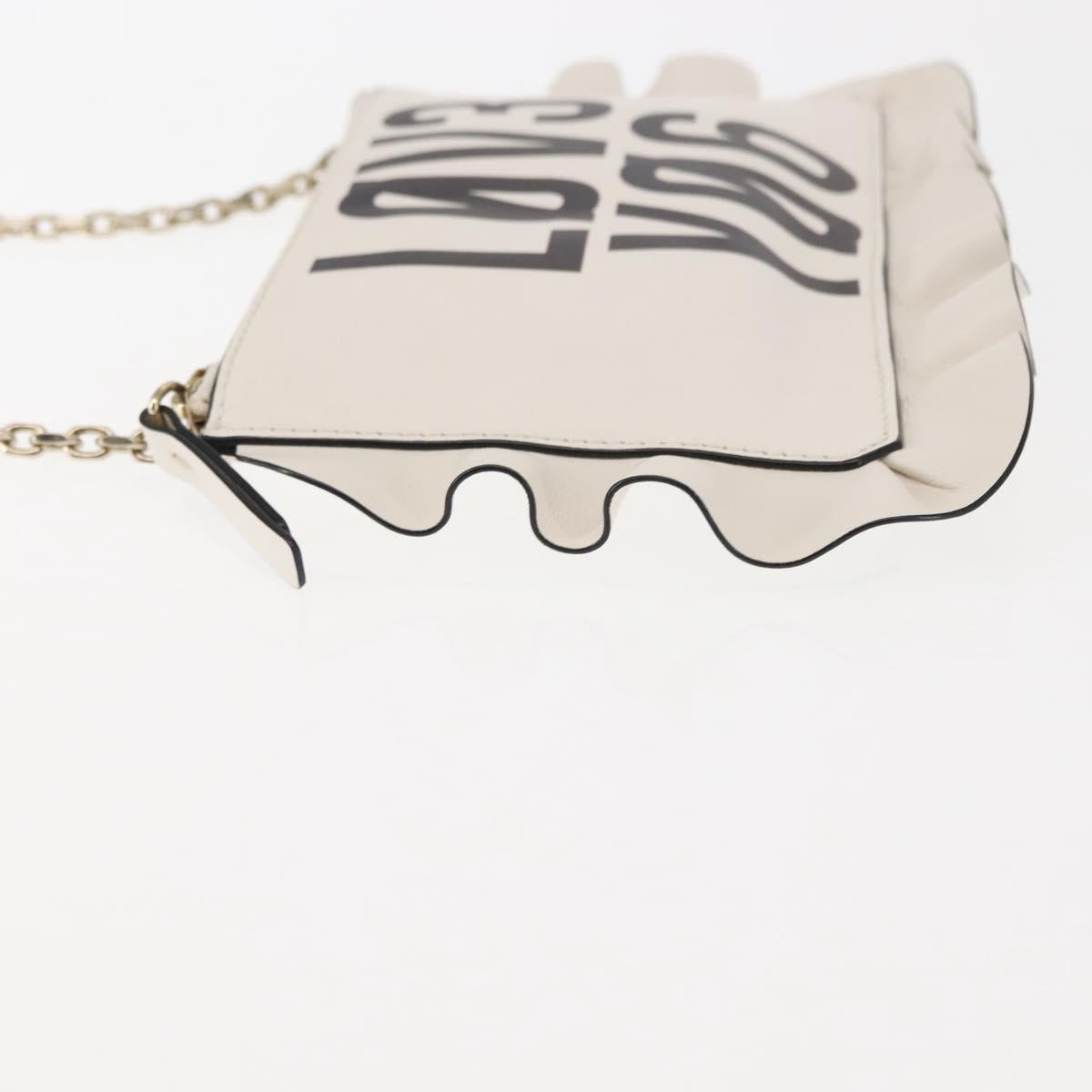 VALENTINO RED VALENTINO Frill Chain Shoulder Bag Leather White Gold Auth bs30020