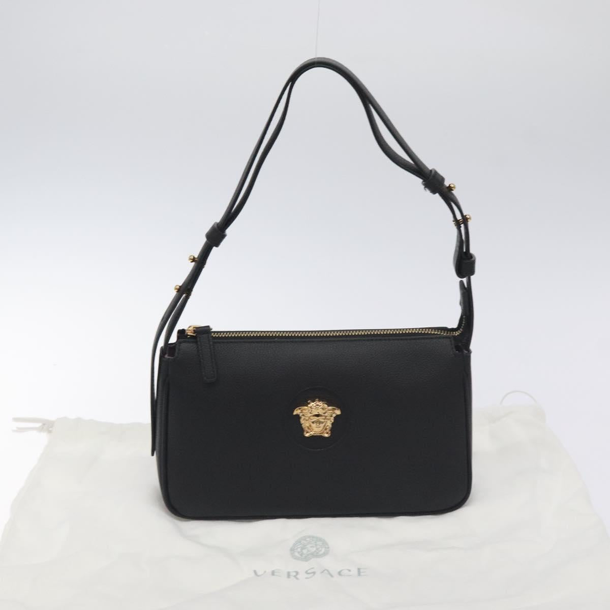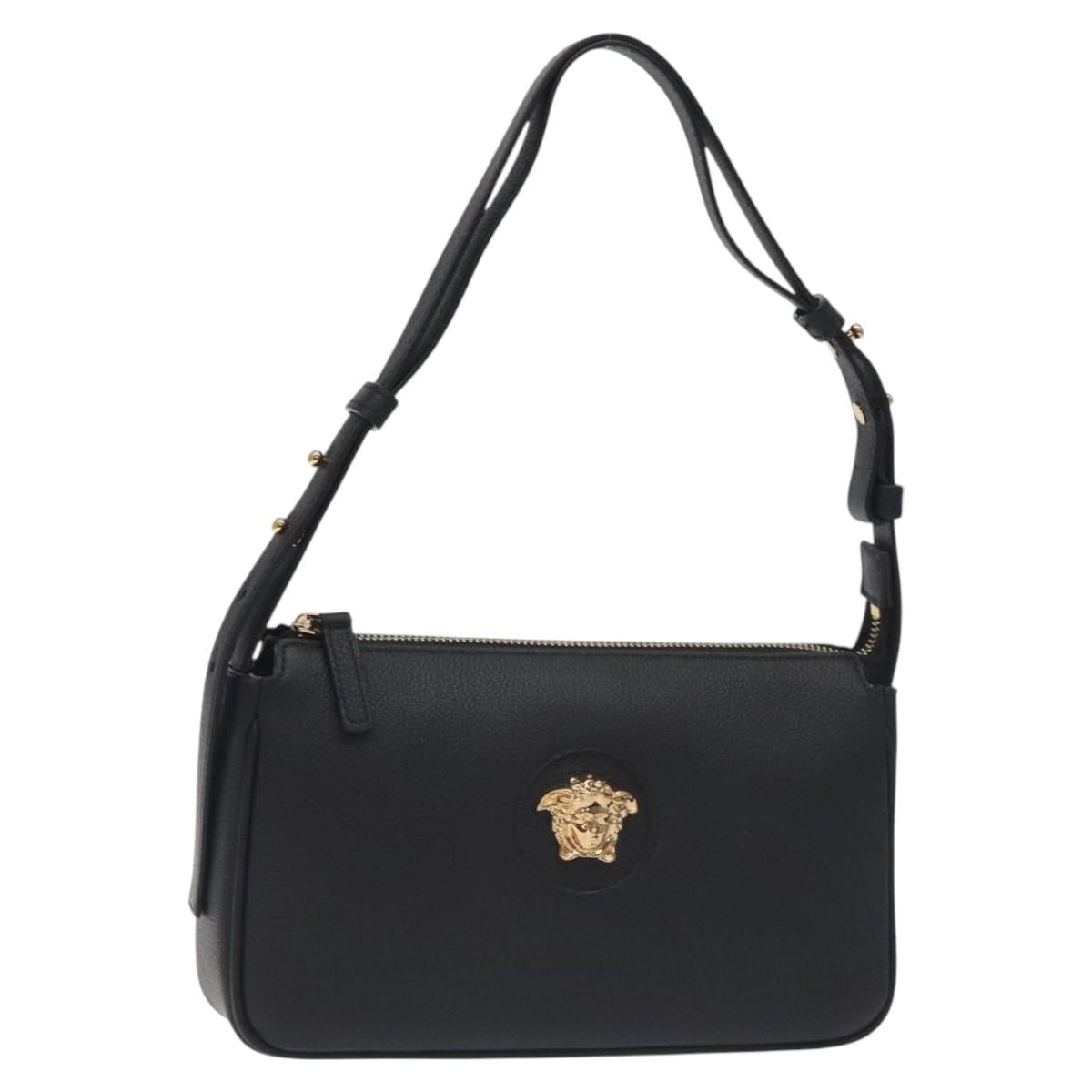 VERSACE Shoulder Bag Leather Black Gold Auth 130265