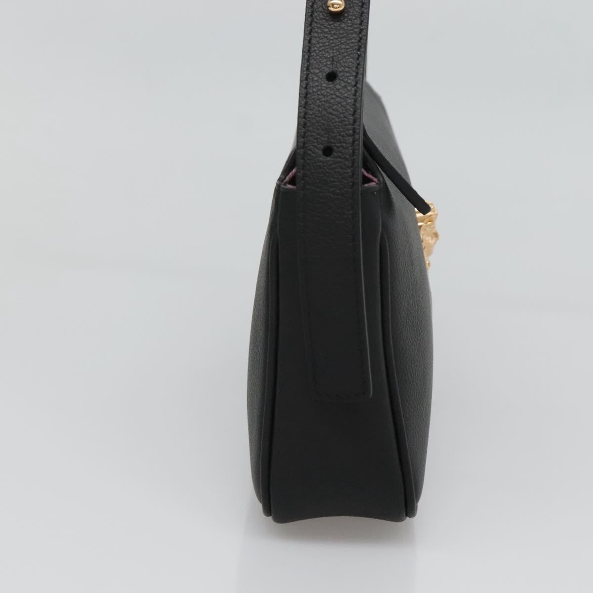 VERSACE Shoulder Bag Leather Black Gold Auth 130270