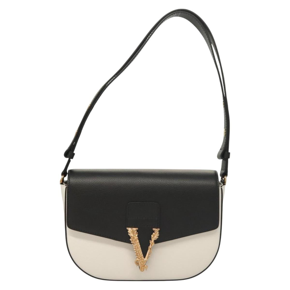 VERSACE Shoulder Bag Leather Black Gold white Auth 130294